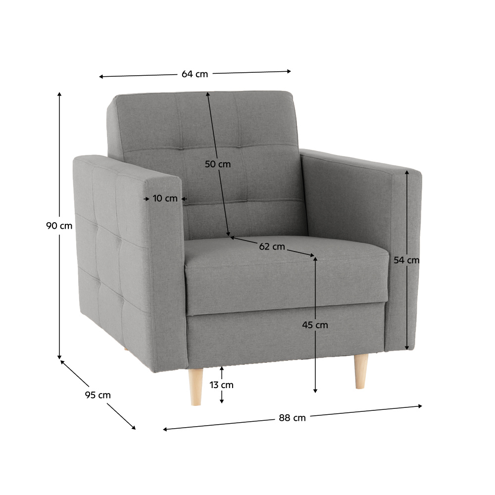 Celočalouněné křeslo AMEDIA Barva: šedá Materiál: látka Norn Oděruodolnost textilie podle testu Martindale: 50 000 oděrek Rozměry: (ŠxHxV): 88x95x90 cm Hloubka sedu: 62 cm Výška sedu: 45 cm Výška spodního prostoru od podlahy: 13 cm Nosnost na osobu: 90 kg