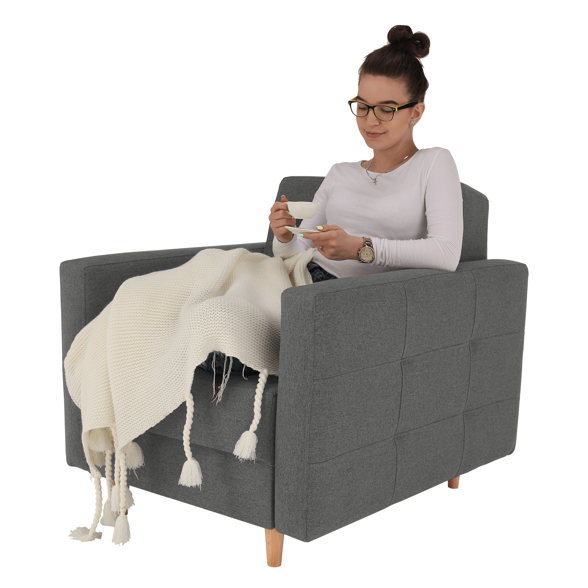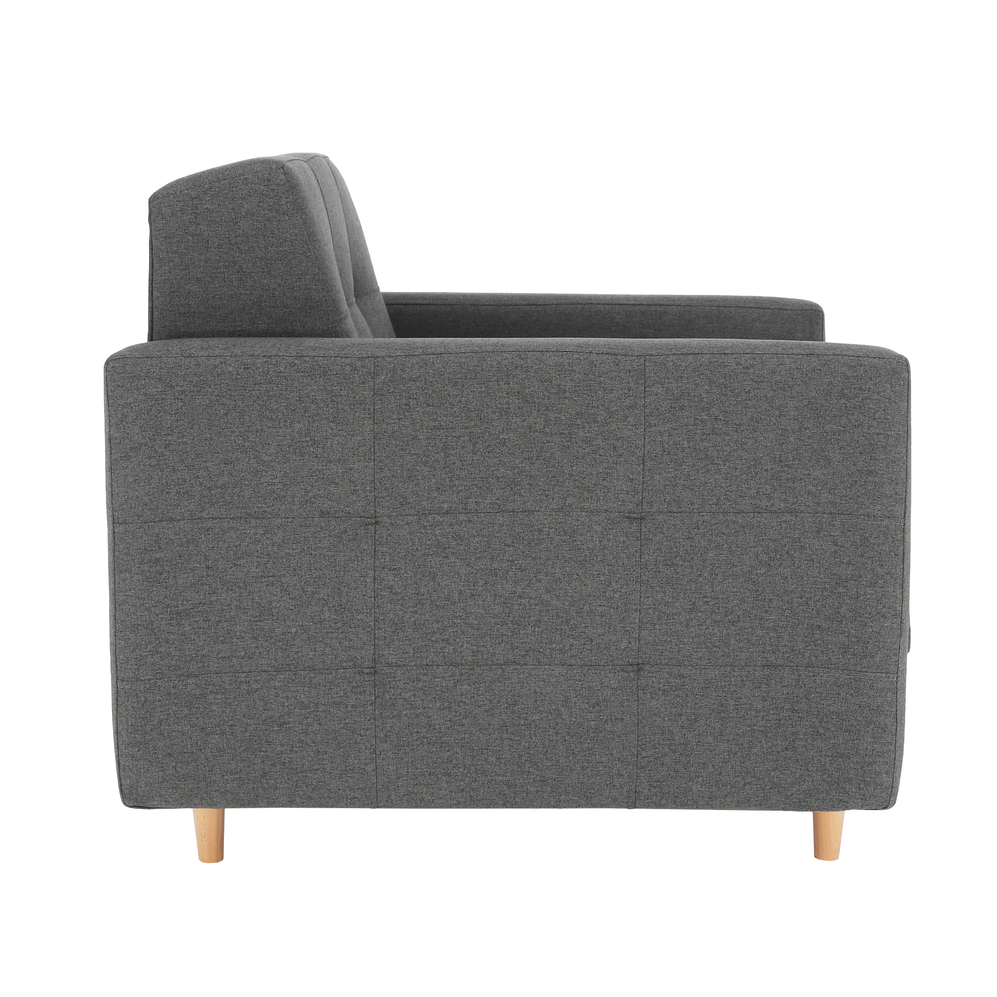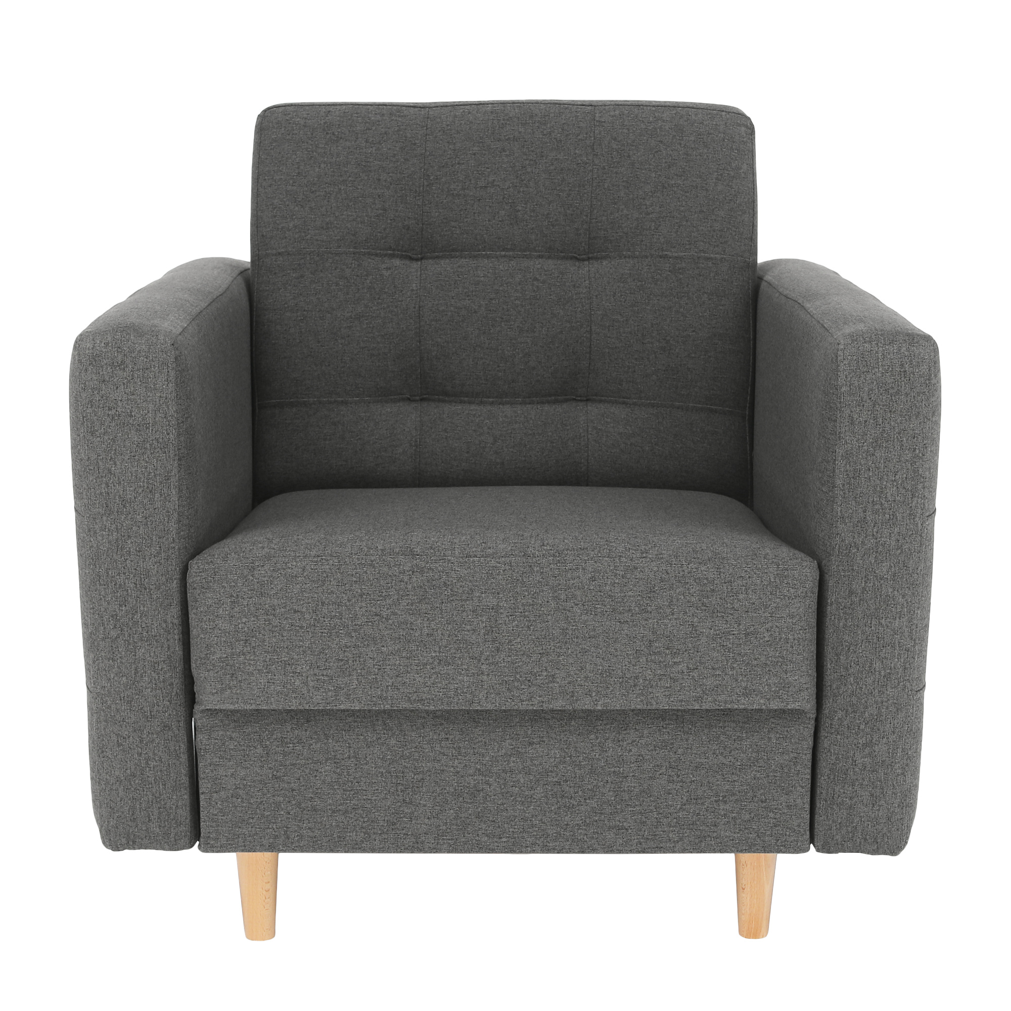Celočalouněné křeslo AMEDIA Barva: tmavě šedá / natural Oděruodolnost textilie podle testu Martindale: 50 000 oděrek Materiál: látka Norn / dřevo Rozměry: (ŠxHxV): 88x95x90 cm Hloubka sedu: 62 cm Výška sedu: 45 cm Výška spodního prostoru od podlahy: 13 cm Nosnost na osobu: 90 kg