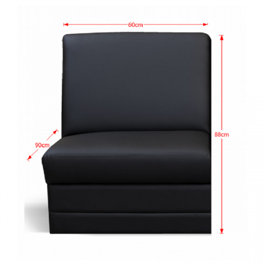 1-sed BITER 1 BB Materiál: ekokůže Oděruodolnost textilie podle testu Martindale: 100 000 oděrek Barva: černá Rozměry (ŠxHxV): 60x90x88 cm Výška spodního prostoru od podlahy: 3 cm Nosnost na osobu: 90 kg Dodací lhůta 6-8týdnů. Nabízíme vám možnost zvolit si barevný odstín ze sedmi barev látky Cable a ze sedmi barev ekokůže. Odstíny najdete v přiloženém vzorníku. Výběr barevného odstínu poznamenejte při objednávání přímo do poznámky. Při individuální objednávce je třeba zaplatit 20% zálohu z dané částky. Po uhrazení zálohy bude Váš požadavek zadána do výroby. Doba dodání 6-8 týdnů. Cena takto složené sedačky v jiné barvě závisí na počtu jednotlivých dílů, které ji tvoří. Doporučujeme prověřit si konečnou cenu na e-mail adrese nakup@tempo-kondela.sk.