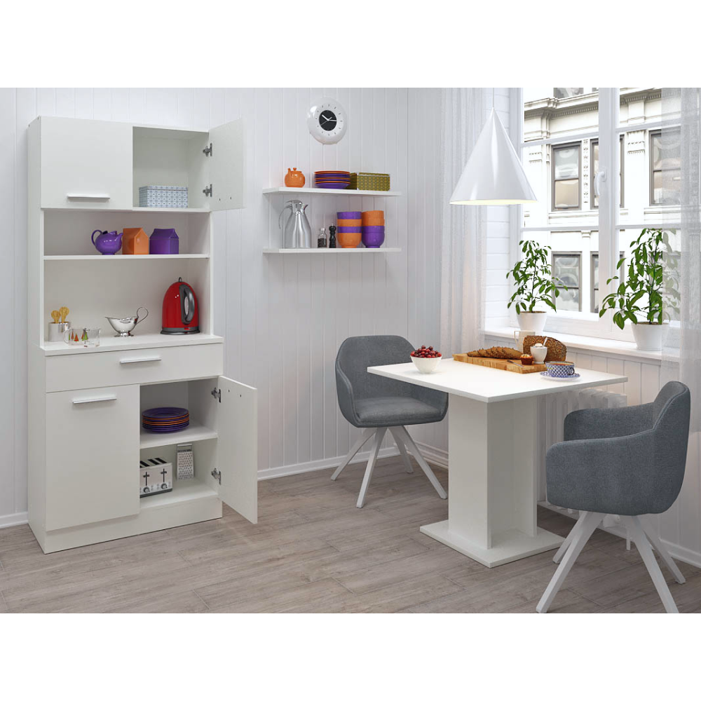 Materiál: laminovaná DTD Barva: bílá Rozměry (ŠxHxV): 80x43,3x185 cm Tloušťka materiálu: 1,6 cm Tloušťka vrchního plátu spodní skříňky: 2,2 cm Čtyřdveřový Policový Nosnost police: 5 kg 1 zásuvka Rozměry zásuvky (ŠxV): 79,4x15 cm Nosnost zásuvky: 5 kg S úchytkami Materiál úchytek: PVC Barva úchytek: stříbrná Na kluzácích Praktický Víceúčelový Kvalitní slovenský výrobek Doporučujeme připevnit ke zdi Dodáváno v demontu