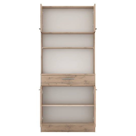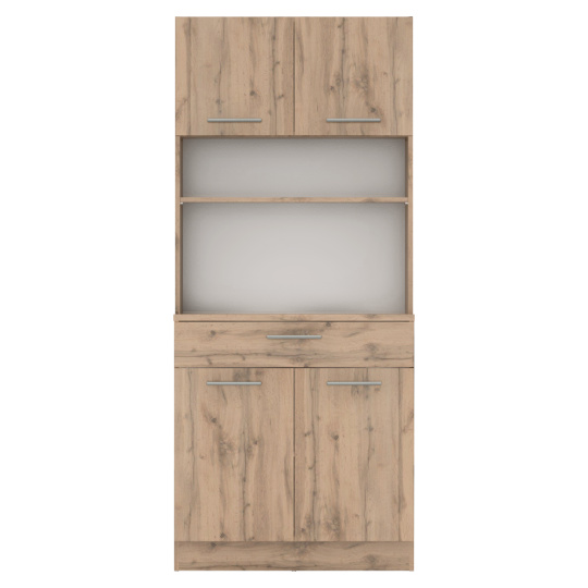 Materiál: laminovaná DTD Barva: dub wotan Rozměry (ŠxHxV): 80x43,3x185 cm Tloušťka materiálu: 1,6 cm Tloušťka vrchního plátu spodní skříňky: 2,2 cm Čtyřdveřový Policový Nosnost police: 5 kg 1 zásuvka Rozměry zásuvky (ŠxV): 79,4x15 cm Nosnost zásuvky: 5 kg S úchytkami Materiál úchytek: PVC Barva úchytek: stříbrná Na kluzácích Praktický Víceúčelový Kvalitní slovenský výrobek Doporučujeme připevnit ke zdi Dodáváno v demontu
