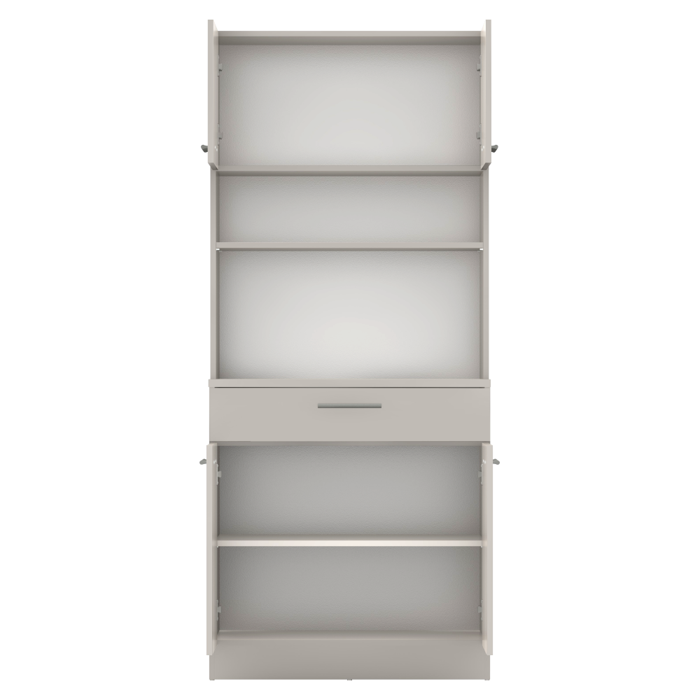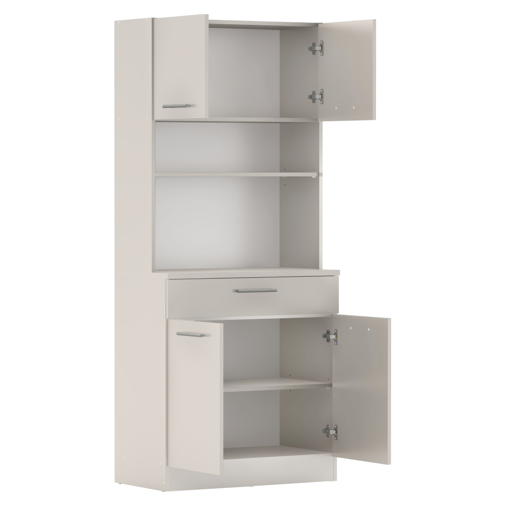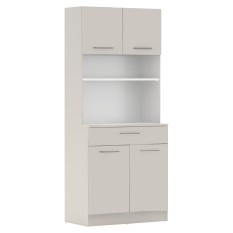 Materiál: laminovaná DTD Barva: kašmír Rozměry (ŠxHxV): 80x43,3x185 cm Tloušťka materiálu: 1,6 cm Tloušťka vrchního plátu spodní skříňky: 2,2 cm Čtyřdveřový Policový Nosnost police: 5 kg 1 zásuvka Rozměry zásuvky (ŠxV): 79,4x15 cm Nosnost zásuvky: 5 kg S úchytkami Materiál úchytek: PVC Barva úchytek: stříbrná Na kluzácích Praktický Víceúčelový Kvalitní slovenský výrobek Doporučujeme připevnit ke zdi Dodáváno v demontu