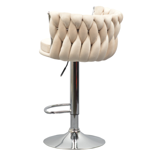 Designová barová židle, béžová Velvet látka/chrom, BRIN