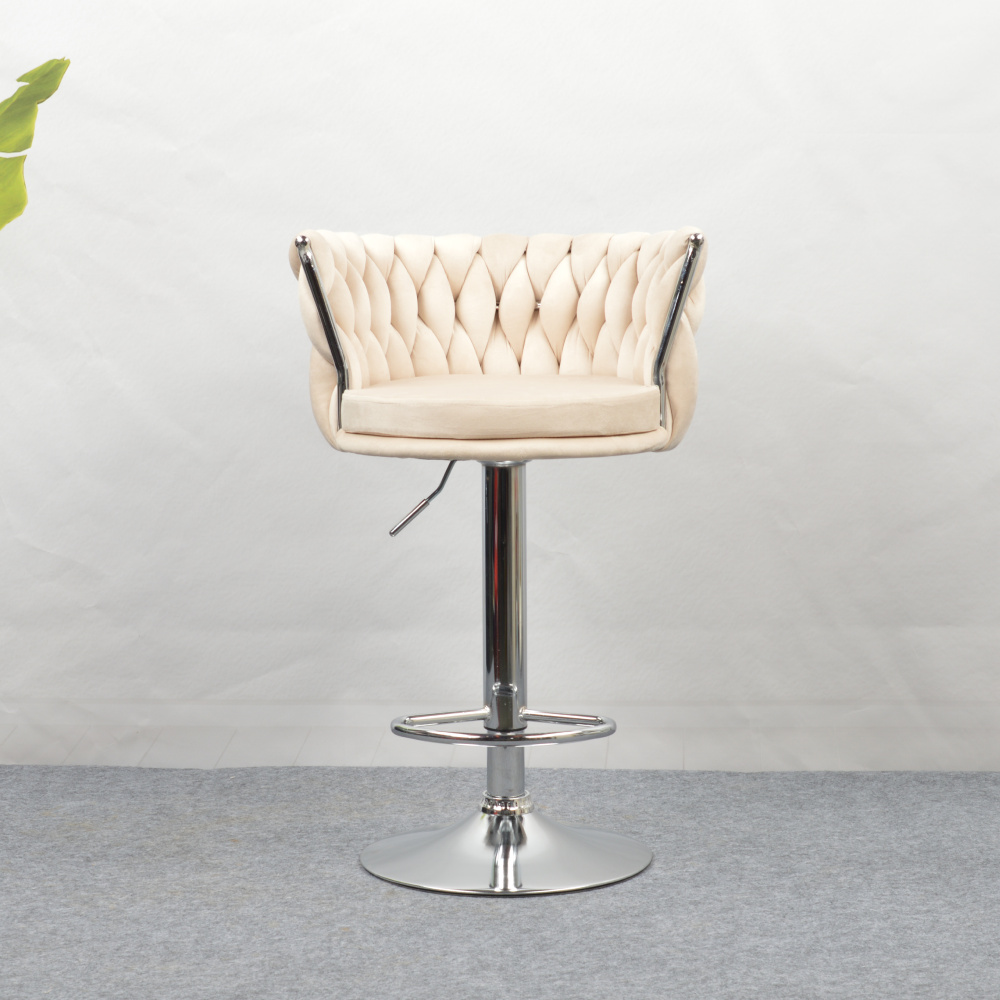Designová barová židle, béžová Velvet látka/chrom, BRIN