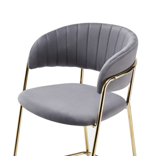 Designová barová židle, šedohnědá Velvet látka/gold chrom zlatý, DASMIN TYP 2