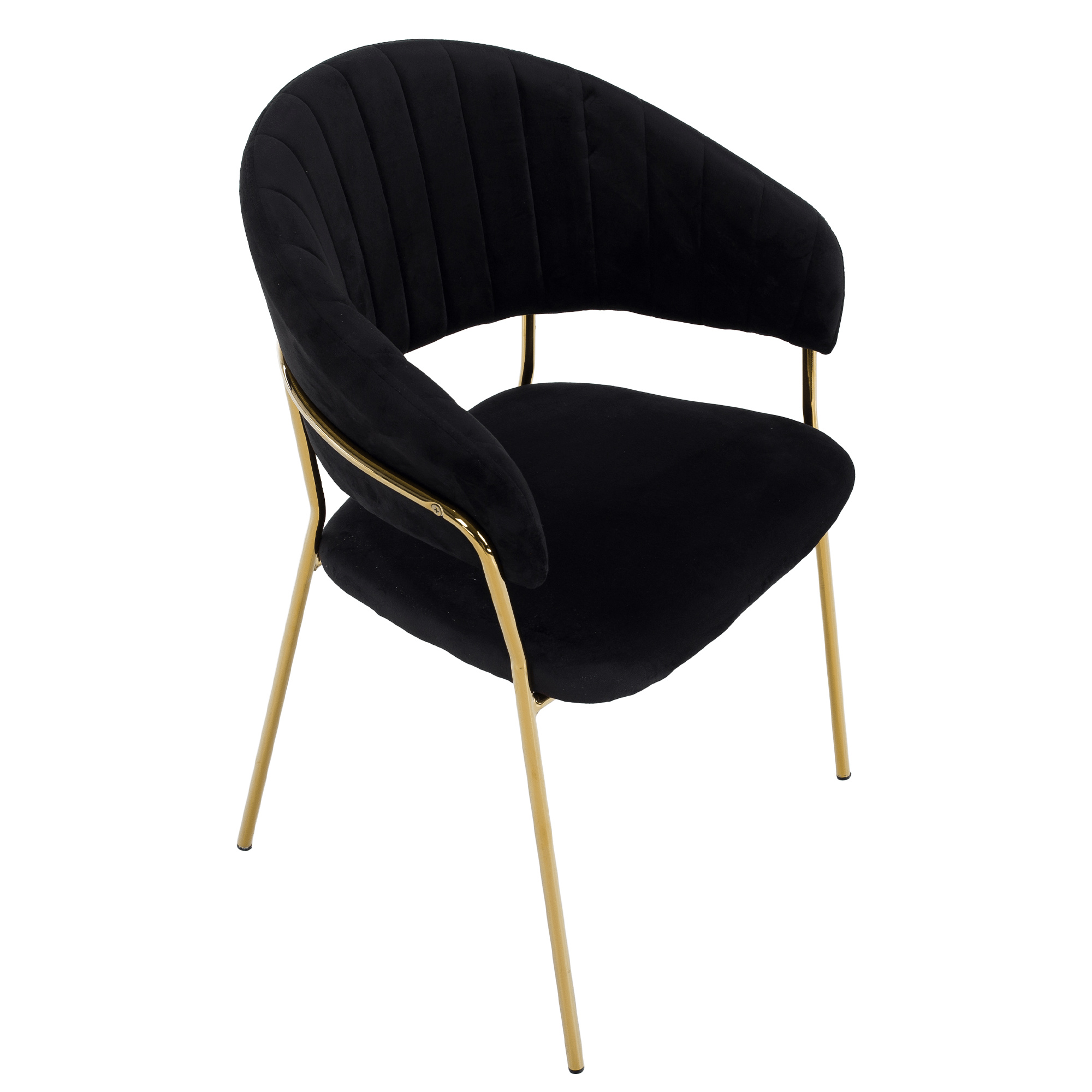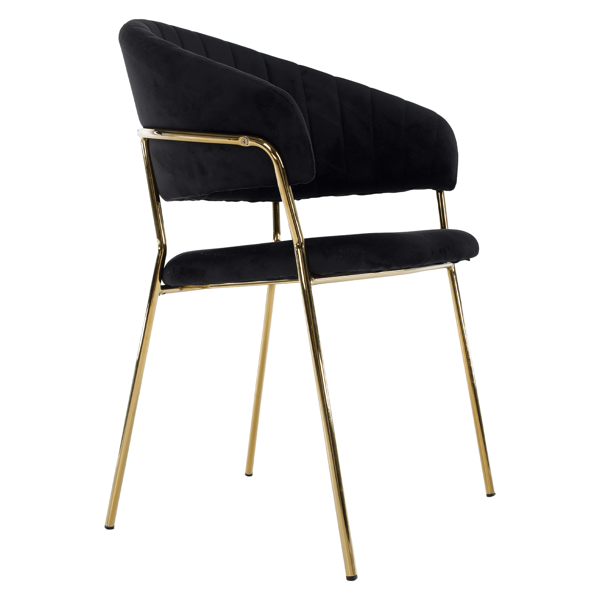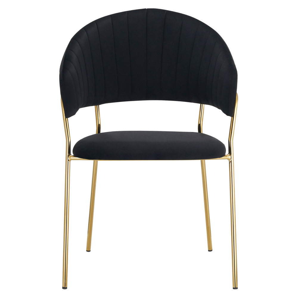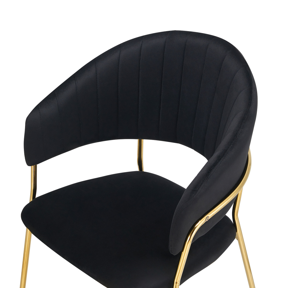 Materiál: látka Velvet/chrom Oděruodolnost textilie podle testu Martindale: 80 000 oděrů Barva: černá/gold chrom zlatý Rozměry (ŠxHxV): 58x53x81,5 cm Výška sedu: 45,5 cm Hloubka sedu: 41 cm Šířka sedu: 49 cm Výška zádové opěrky: 40,5 cm Šířka zádové opěrky: 57 cm Nosnost: 100 kg Kovová konstrukce Designové Prošívané Dodáváno v demontu