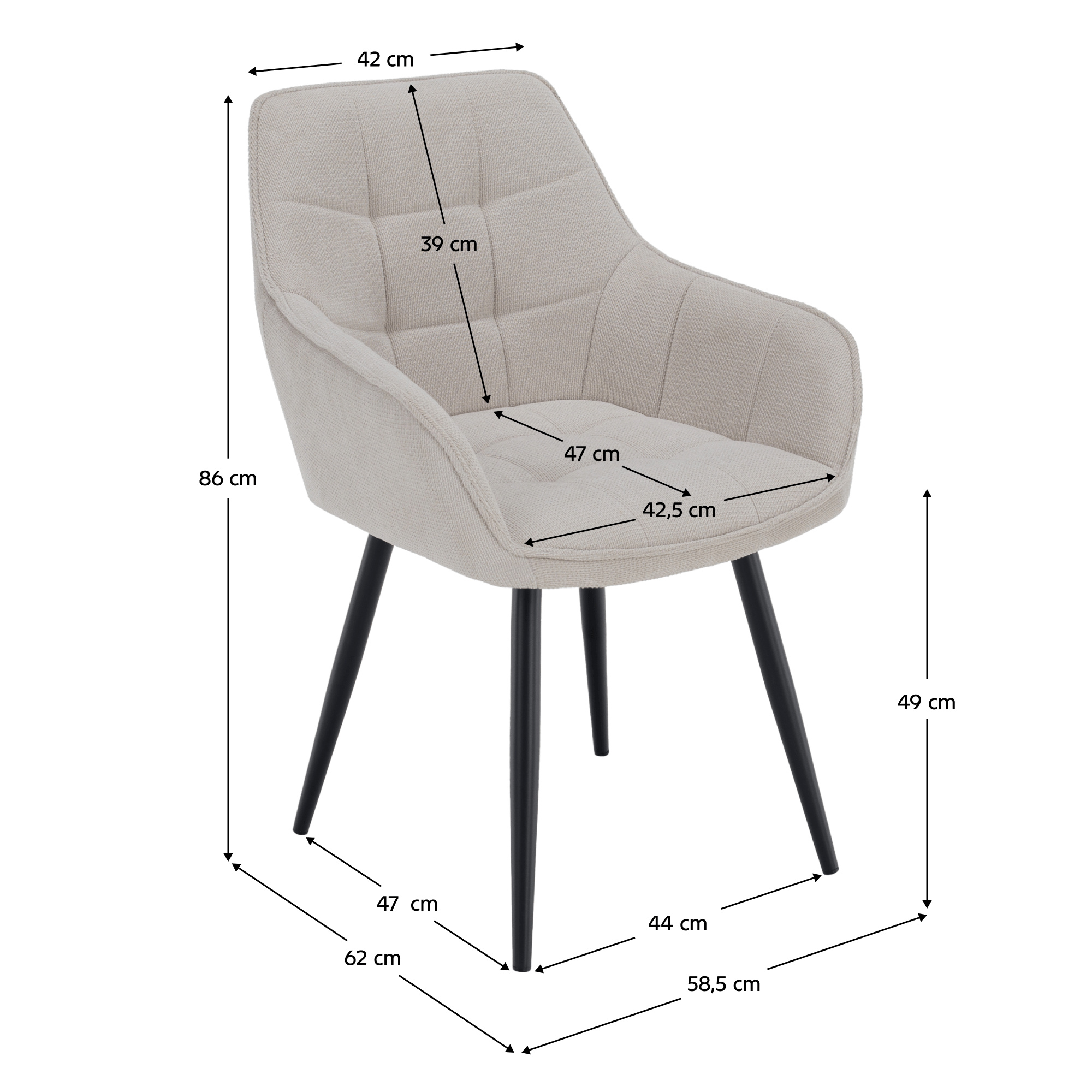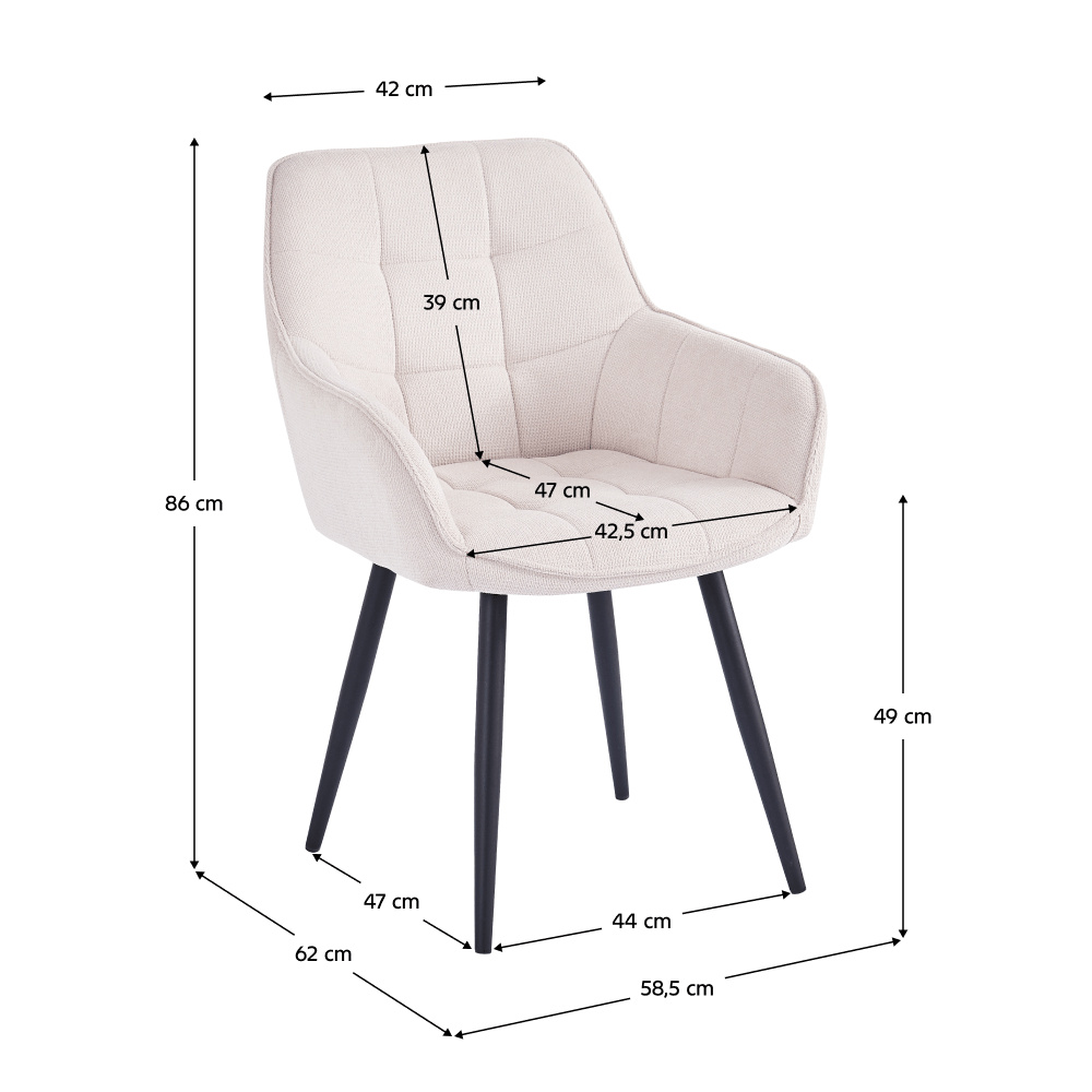 Materiál: látka Vardo 25/kov Oděruodolnost textilie podle testu Martindale: 80 000 oděrů Barva: béžová/černá Rozměry (ŠxHxV): 58,5x62x86 cm Výška sedu: 49 cm Hloubka sedu: 47 cm Šířka sezení: 42,5 cm Výška zádové opěrky: 39 cm Nosnost: 90 kg Designové S měkkou sedací částí Dodáváno v demontu