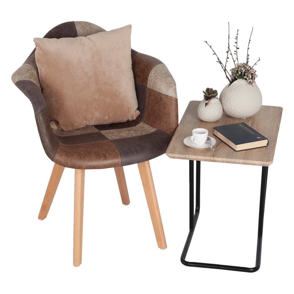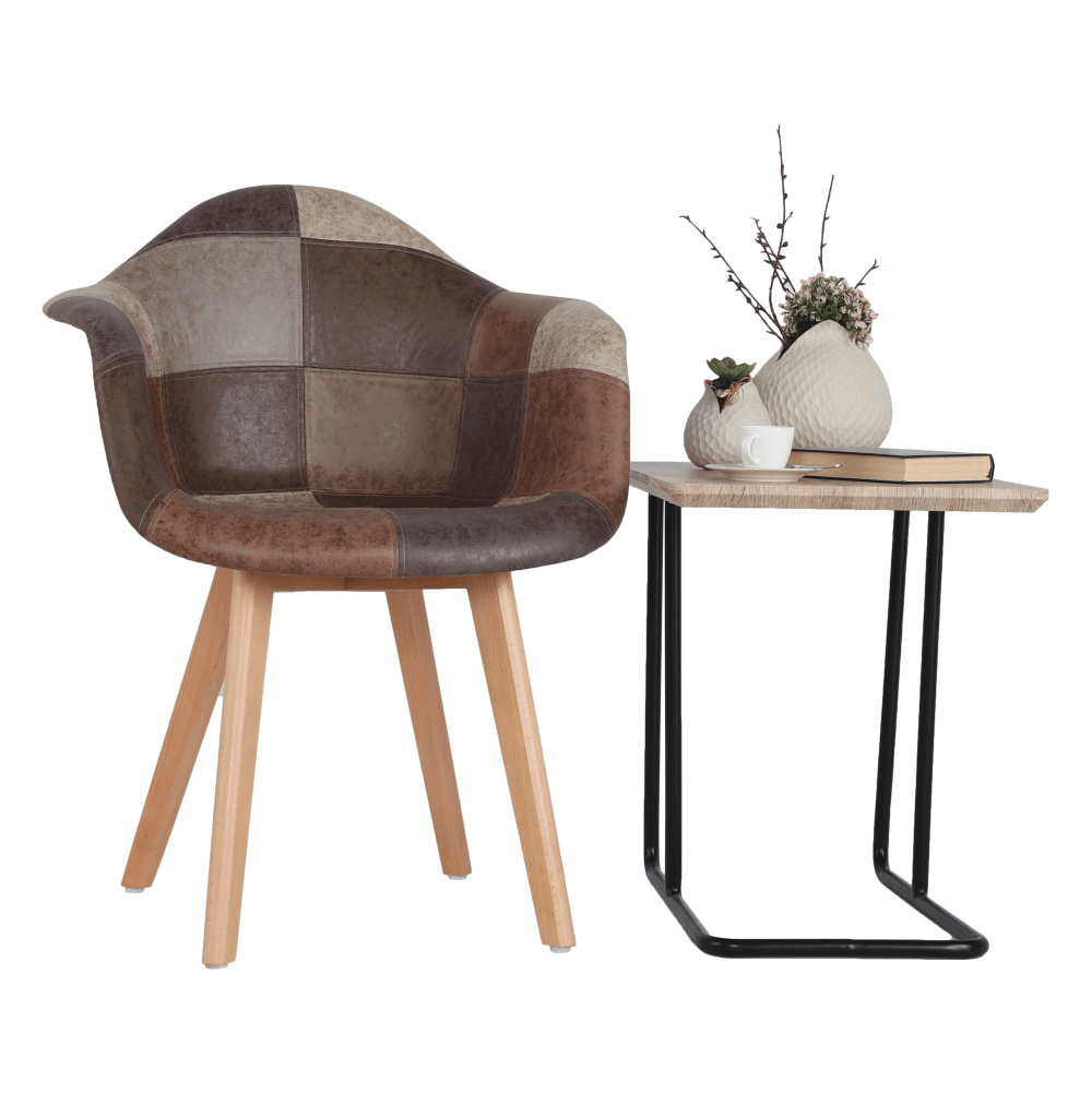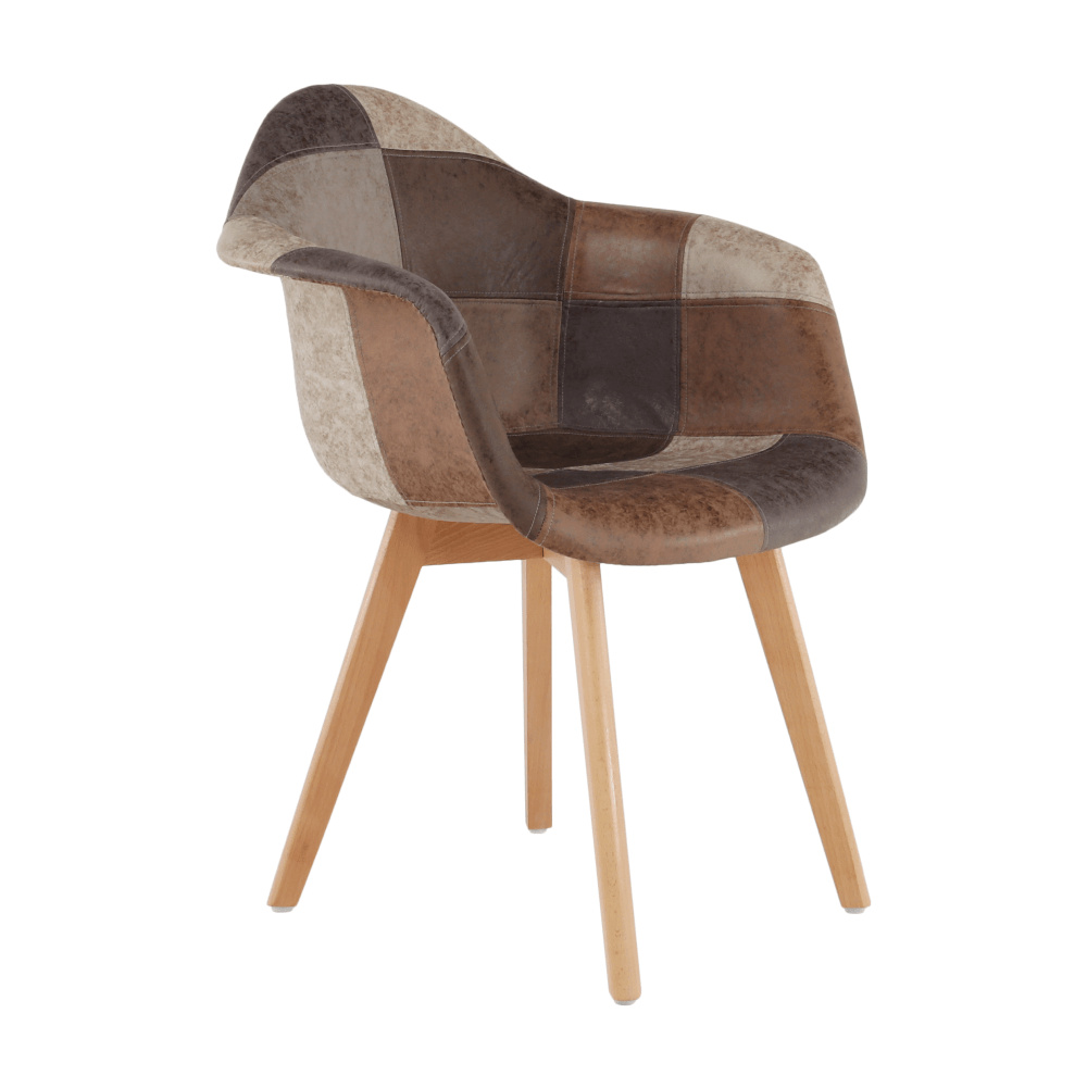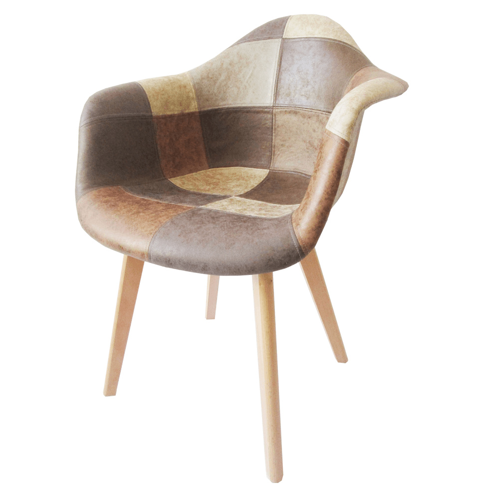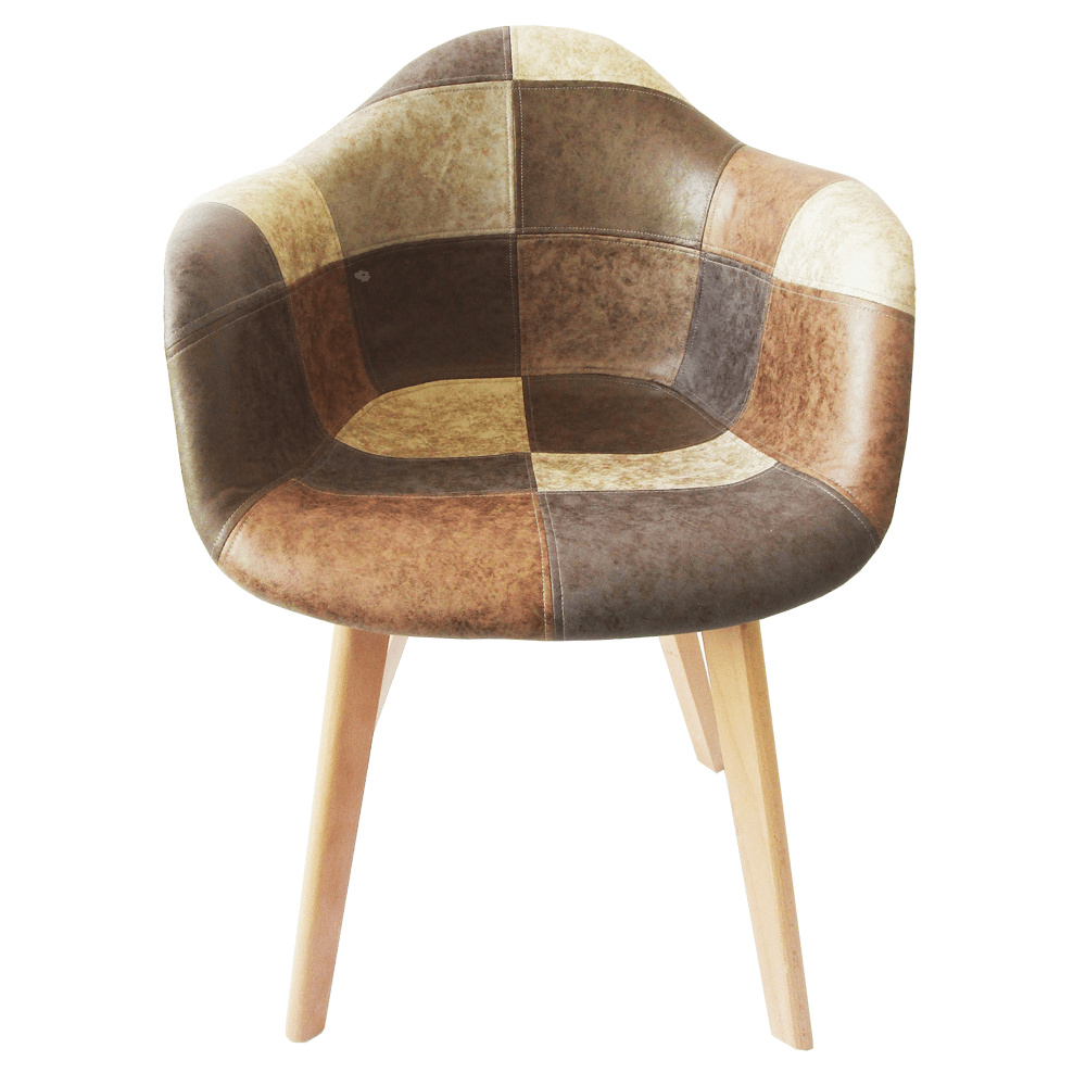 Křeslo TERST Materiál: plast / ekokůže / dřevo Barva: patchwork / buk Rozměry (ŠxHxV): 64x60x83 cm Výška sedu: 46 cm Hloubka sedu: 44 cm moderní design Dodávané v demontu.