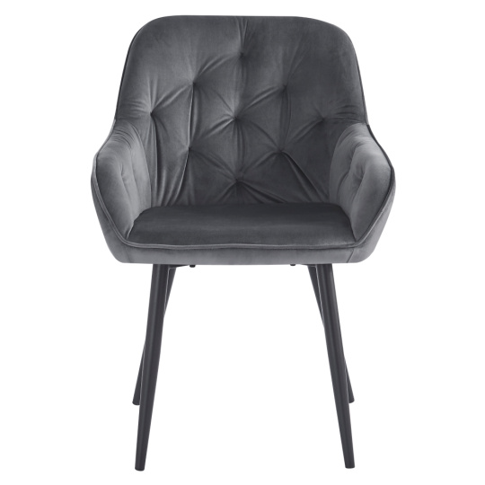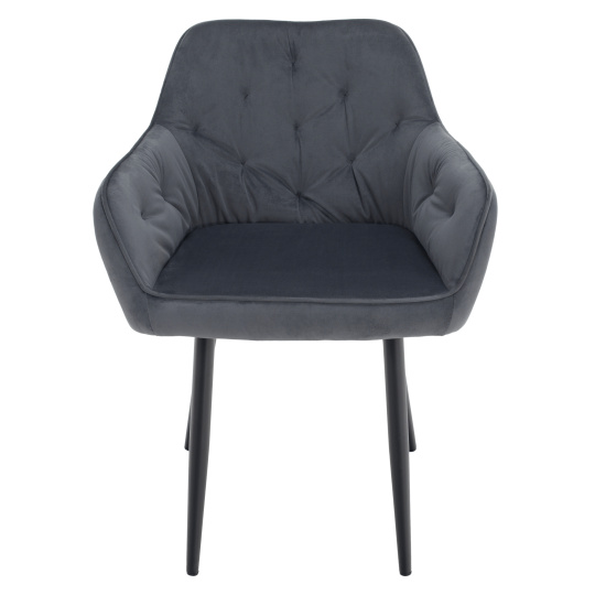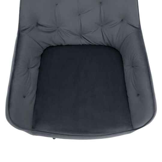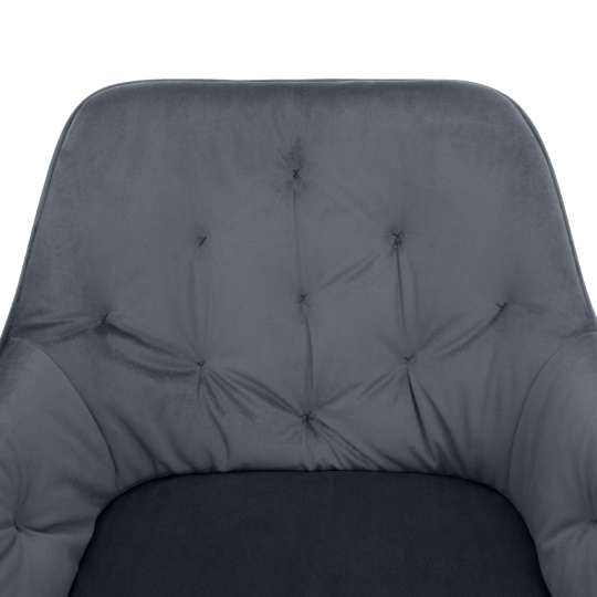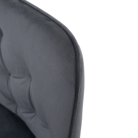 Materiál: látka Bluvel 14/kov Oděruodolnost textilie podle testu Martindale: 80 000 oděrů Barva: šedá Velvet/černá Rozměry (ŠxHxV): 58,5x62x81 cm Výška sedu: 48 cm Hloubka sedu: 46 cm Šířka sezení: 43 cm Výška zádové opěrky: 39 cm Nosnost: 90 kg Designové Dekorativně prošité S měkkou sedací částí Dodáváno v demontu