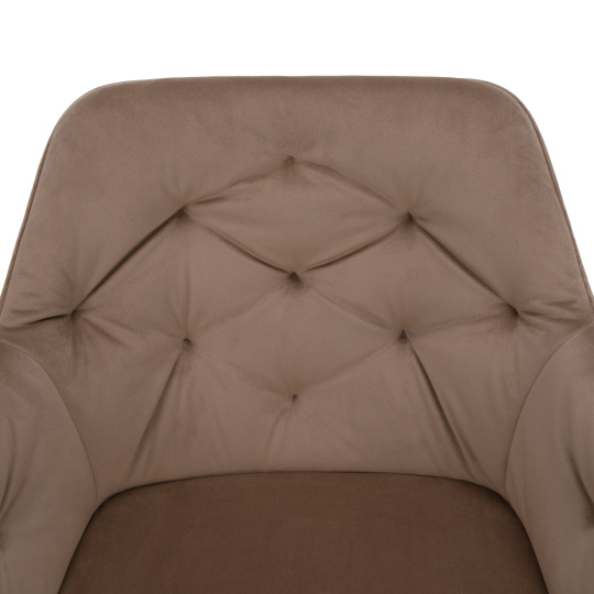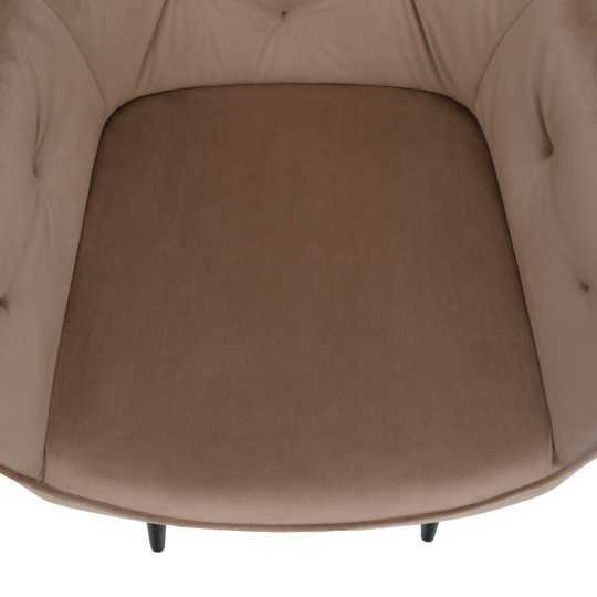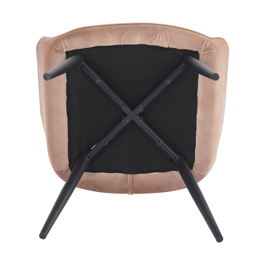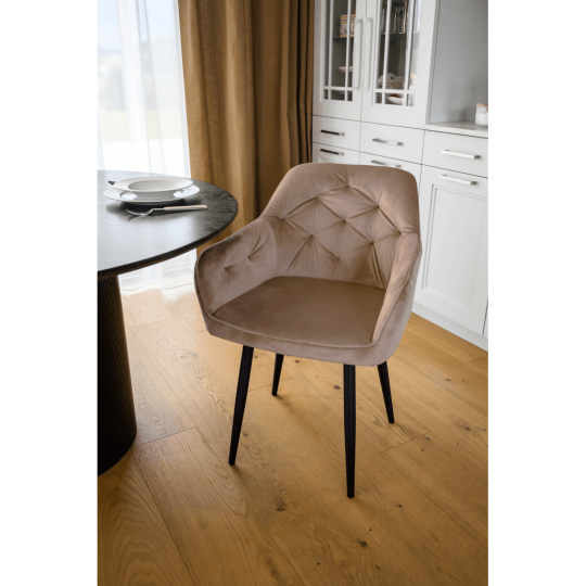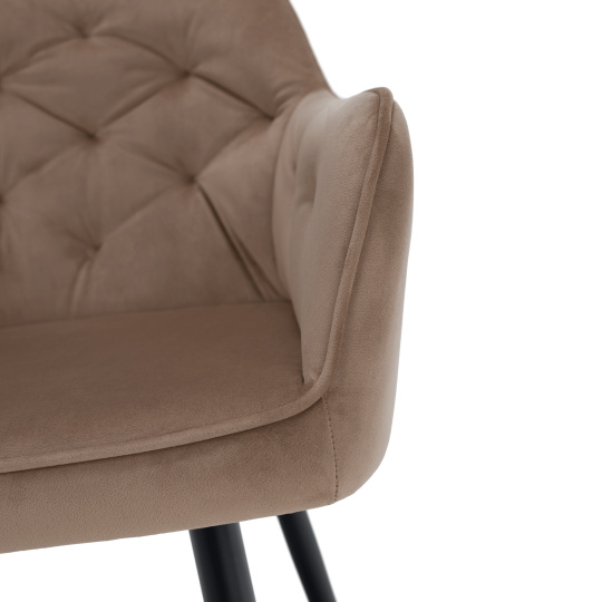 Materiál: látka Bluvel 28/kov Oděruodolnost textilie podle testu Martindale: 80 000 oděrů Barva: světle hnědá Velvet/černá Rozměry (ŠxHxV): 58,5x62x81 cm Výška sedu: 48 cm Hloubka sedu: 46 cm Šířka sezení: 43 cm Výška zádové opěrky: 39 cm Nosnost: 90 kg Designové Dekorativně prošité S měkkou sedací částí Dodáváno v demontu