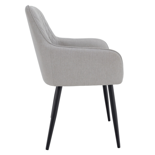 Materiál: látka Nea 03/kov Oděruodolnost textilie podle testu Martindale: 75 000 oděrů Barva: světle šedá/černá Rozměry (ŠxHxV): 55,5x58,5x83,5 cm Výška sedu: 47 cm Hloubka sedu: 45,5 cm Šířka sezení: 41,5 cm Výška zádové opěrky: 41 cm Nosnost: 90 kg Designové S měkkou sedací částí Dekorativně prošité Dodáváno v demontu