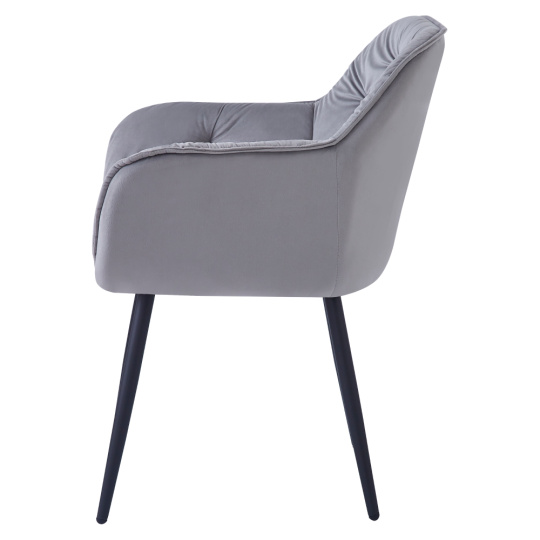 Materiál: látka Velvet/kov Oděruodolnost textilie podle testu Martindale: 80 000 oděrů Barva: světle šedá/černá Rozměry (ŠxHxV): 61,5x59,5x80 cm Výška sedu: 47,5 cm Hloubka sedu: 45 cm Šířka sedu: 44 cm Šířka zádové opěrky: 46 cm Výška zádové opěrky: 32,5 cm Nosnost: 100 kg Designové Prošívané Dodáváno v demontu