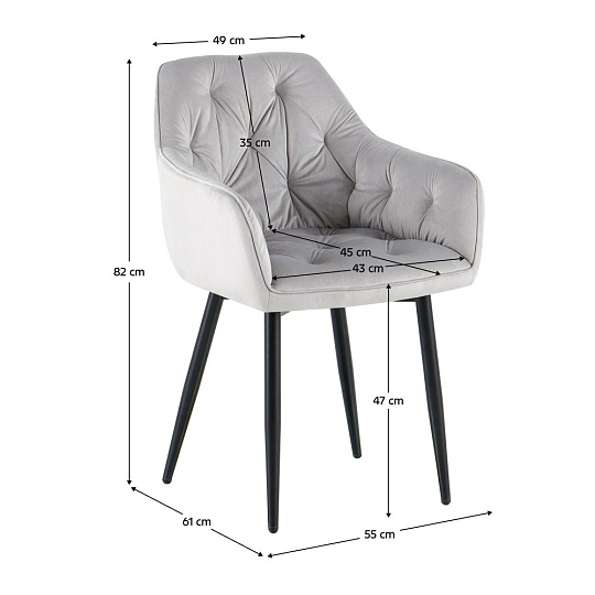Materiál: látka Velvet/kov Oděruodolnost textilie podle testu Martindale: 80 000 oděrů Barva: světle šedá/černá Rozměry (ŠxHxV): 55x61x82 cm Výška sedu: 47 cm Hloubka sedu: 45 cm Šířka sedu: 43 cm Šířka zádové opěrky: 49 cm Výška zádové opěrky: 35 cm Nosnost: 100 kg Designové Prošívané Dodáváno v demontu
