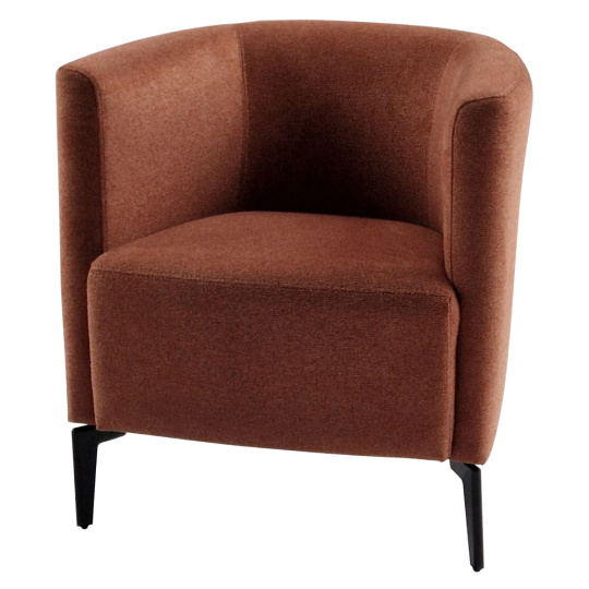 Materiál: látka Matana 07 Oděruodolnost látky podle testu Martindale: 57 000 oděrů Rozměry (ŠxHxV): 67x70x75 cm Barva čalounění: terakota Výplň: pružina falista+ PUR pěna T30 Materiál nohy: kov Barva nohy: černá Výška spodního prostoru od podlahy: 17,5 cm Výška zádové opěrky: 33 cm Šířka zádové opěrky: 53 cm Výška sedu: 46 cm Hloubka sedu: 50 cm Šířka sedu: 50 cm Výška opěrky na ruce: 70 cm Nosnost: 120 kg Designové Celočalouněné Dodáváno v demontu Možnost objednání v 6 barevných provedeních látky Matana v ceně 4.390 Kč. Při individuální objednávce je třeba zaplatit 20% zálohu z dané částky. Po uhrazení zálohy bude Váš požadavek zadán do výroby. Doba dodání 6-8 týdnů.