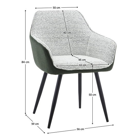 Materiál: látka/kov Oděruodolnost textilie podle testu Martindale: 80 000 oděrů Barva: zelená/světle šedý melír/černá Rozměry (ŠxHxV): 56x59x84 cm Výška sedu: 50 cm Hloubka sedu: 45 cm Šířka sedu: 42 cm Šířka zádové opěrky: 50 cm Výška zádové opěrky: 40 cm Nosnost: 100 kg Jídelní Designové Dodáváno v demontu