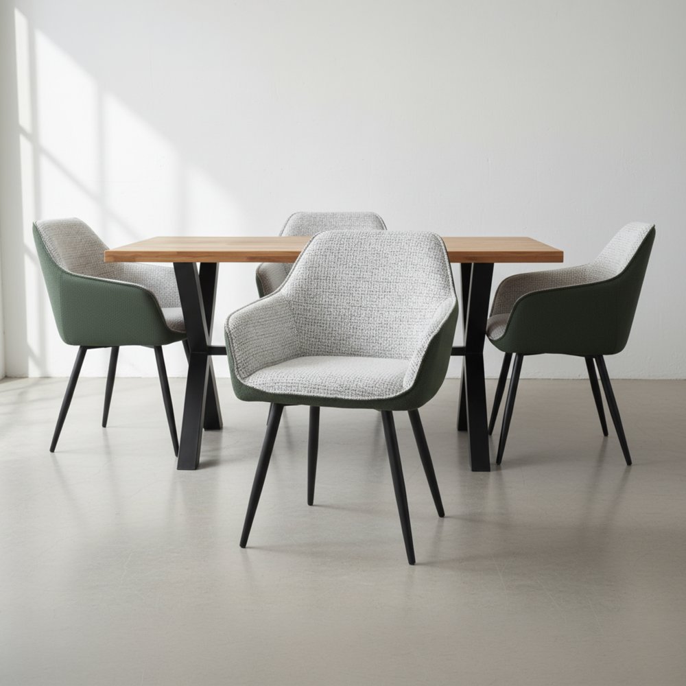 Materiál: látka/kov Oděruodolnost textilie podle testu Martindale: 80 000 oděrů Barva: zelená/světle šedý melír/černá Rozměry (ŠxHxV): 56x59x84 cm Výška sedu: 50 cm Hloubka sedu: 45 cm Šířka sedu: 42 cm Šířka zádové opěrky: 50 cm Výška zádové opěrky: 40 cm Nosnost: 100 kg Jídelní Designové Dodáváno v demontu