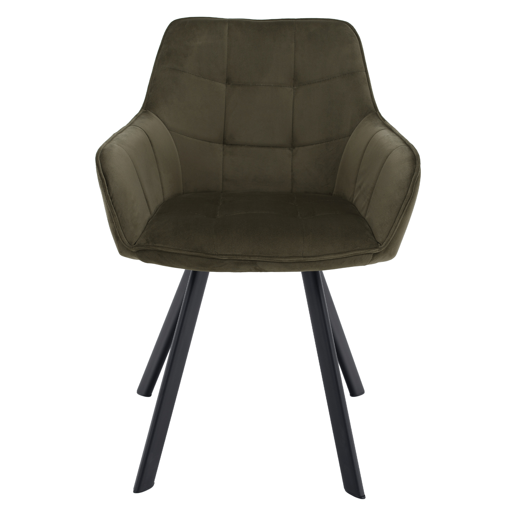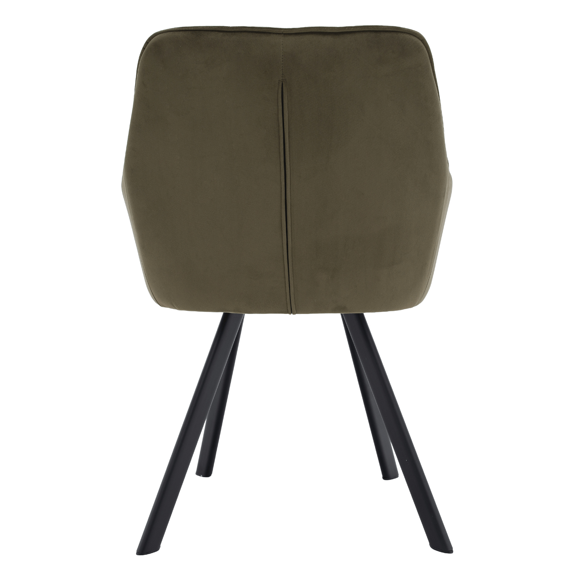 Materiál: látka Bluvel 77/kov Oděruodolnost textilie podle testu Martindale: 80 000 oděrů Barva: zelená Velvet / černá Rozměry (ŠxHxV): 58,5x62x84,5 cm Výška sedu: 50,5 cm Hloubka sedu: 47 cm Šířka sezení: 42,5 cm Výška zádové opěrky: 39 cm Nosnost: 90 kg Designové S měkkou sedací částí Dekorativně prošité Dodáváno v demontu