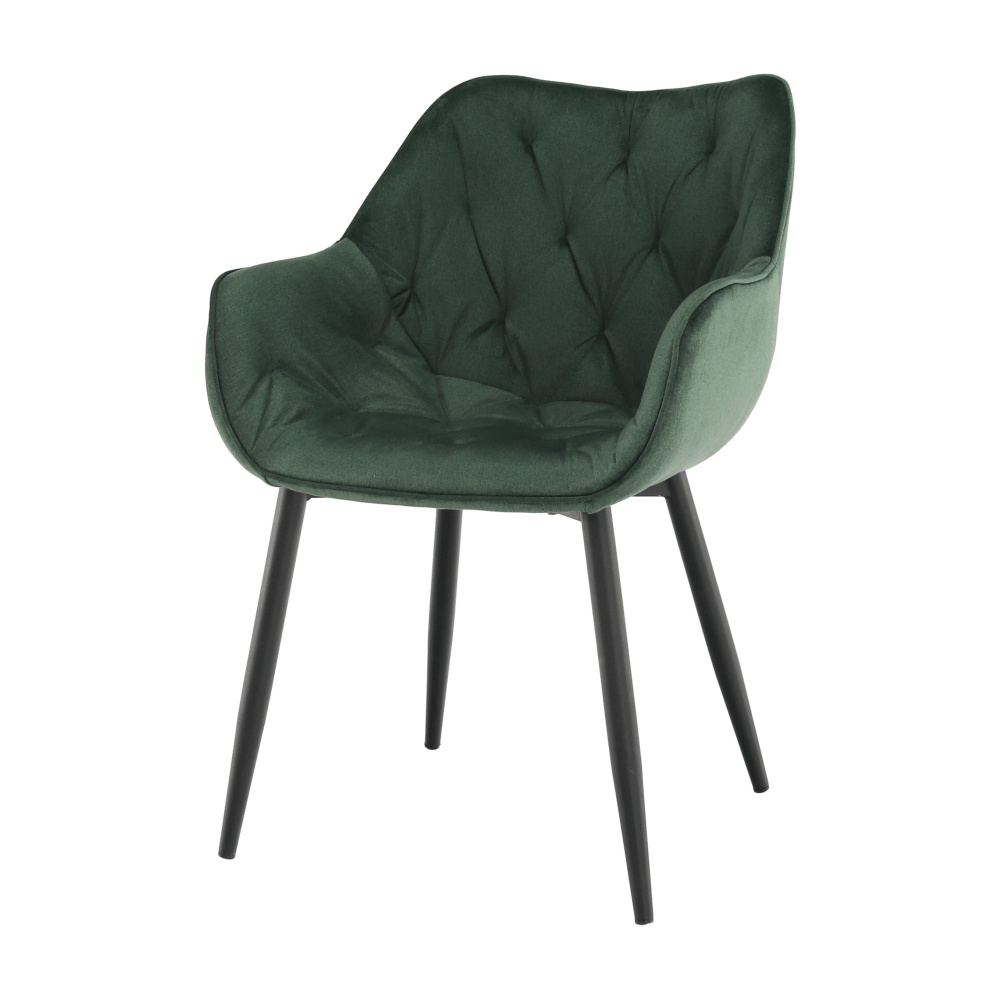 Materiál: Velvet látka / kov Oděruodolnost textilie podle testu Martindale: 80 000 oděrek Barva: zelená / černá Rozměry (ŠxHxV): 58x68x80 cm Výška sedu: 47cm Hloubka sedu: 44cm Nosnost: 100 kg designové prošívané Dodávané v demontu.