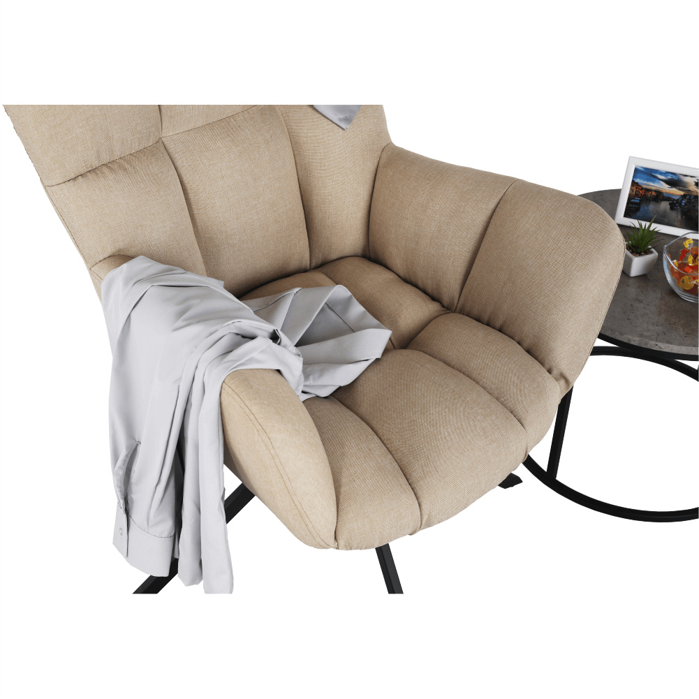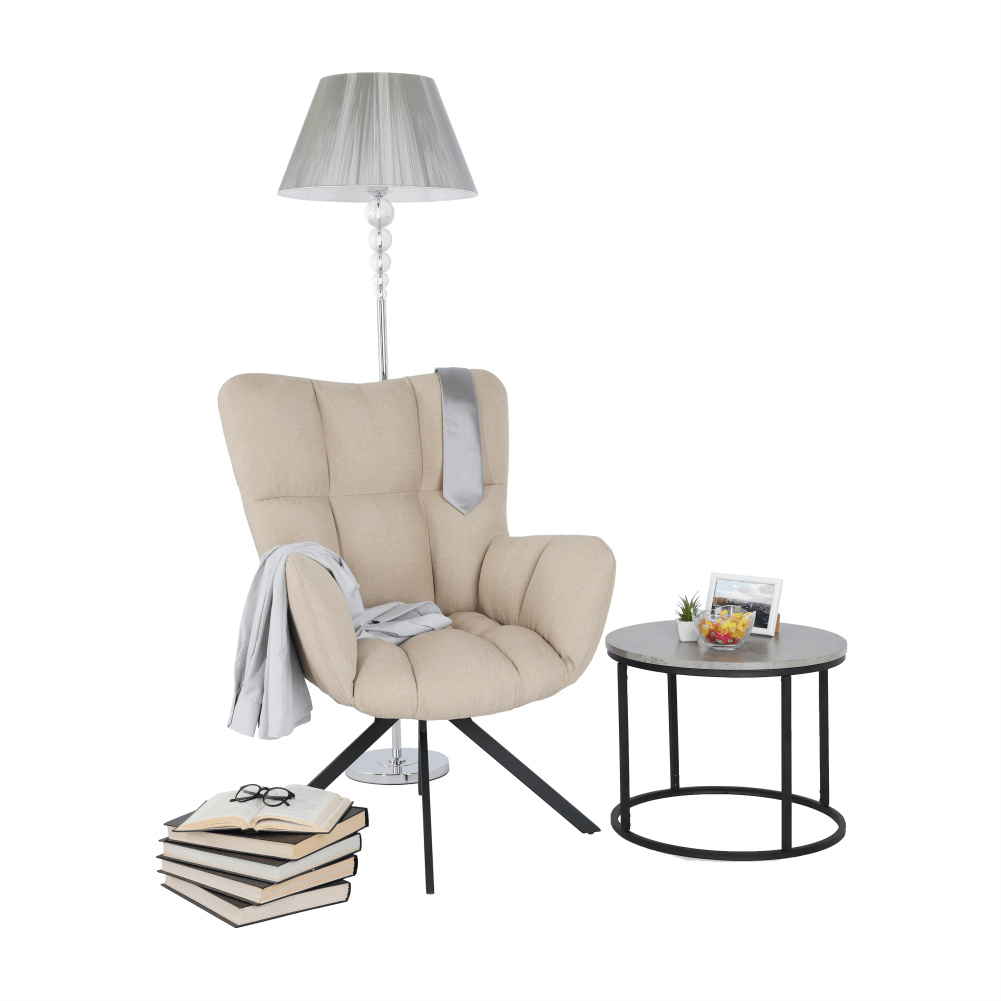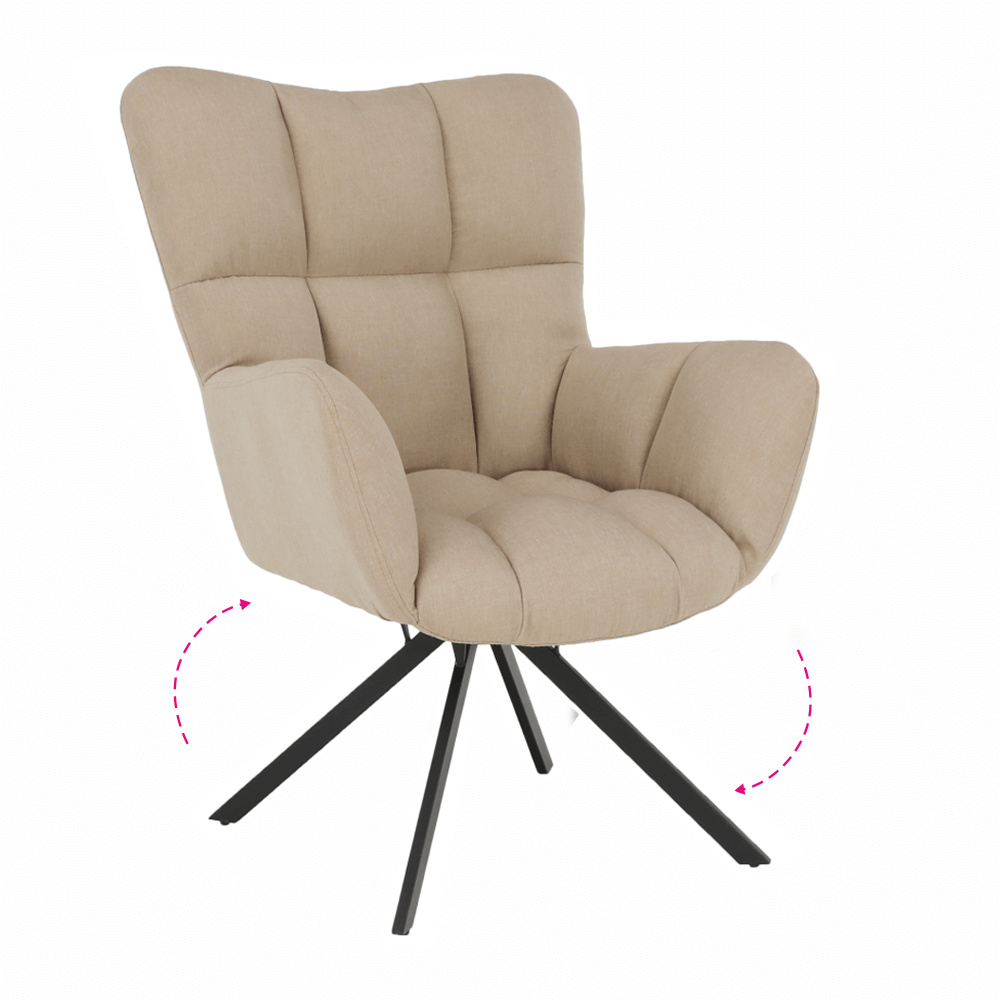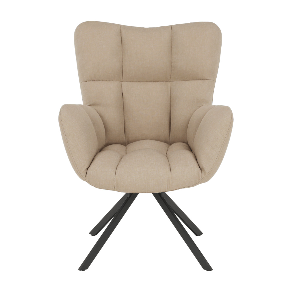 Designové křeslo ODOVEL Materiál: látka / kov Oděruodolnost textilie podle testu Martindale: 80 000 oděrek Barva: béžová / černá Rozměry (ŠxHxV): 56x63x82 cm Výška sedu: 49 cm Hloubka sedu: 46 cm Nosnost: 90 kg Dodávané v demontu. Hmotnost: 7kg