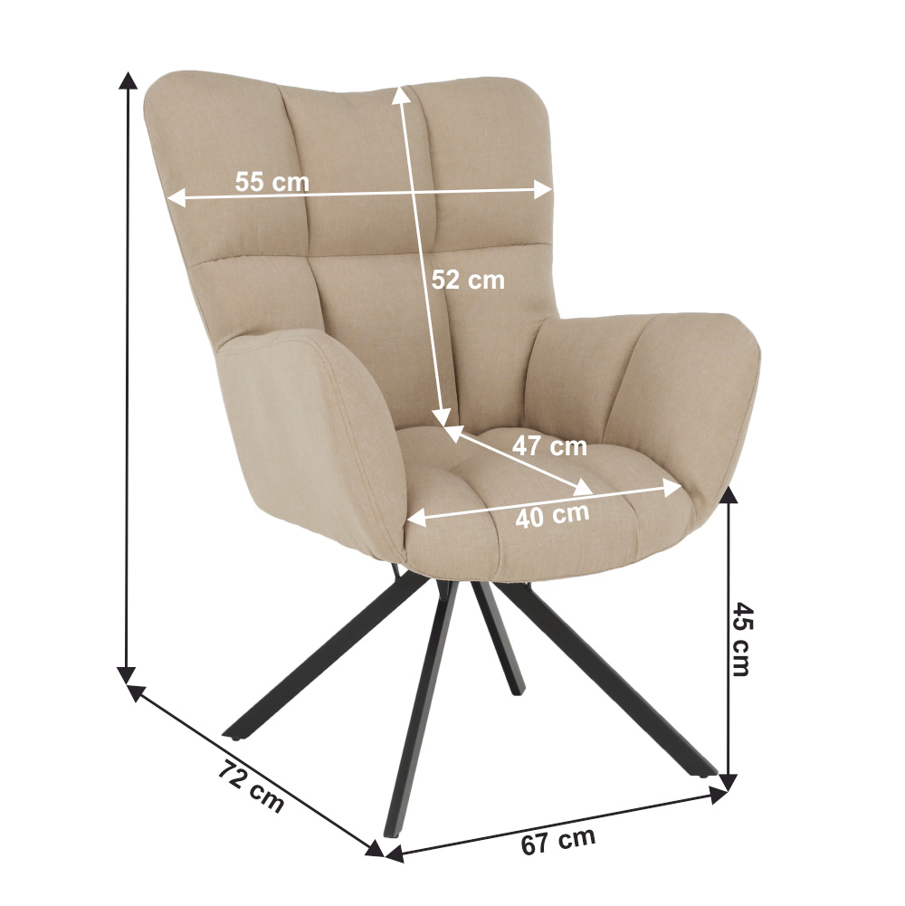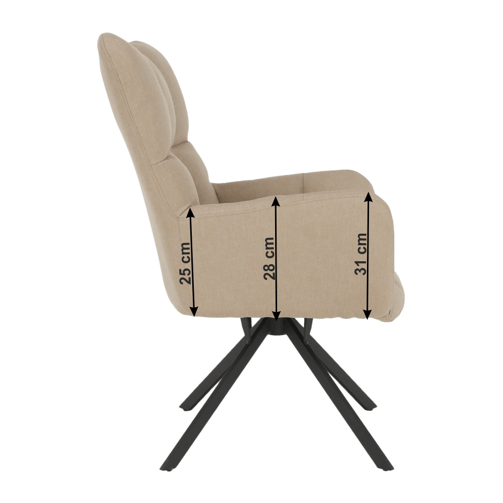 Materiál: látka / kov Oděruodolnost textilie podle testu Martindale: 90 000 oděrek Barva: béžová / černá Rozměry (ŠxHxV): 67x72x97 cm Výška sedu: 45 cm Hloubka sedu: 47 cm Šířka sedu: 40 cm Výška zádové opěrky: 52 cm Šířka zádové opěrky: 55 cm Nosnost: 120 kg designové otočné Extra měkké nadýchané čalounění Dodávané v demontu