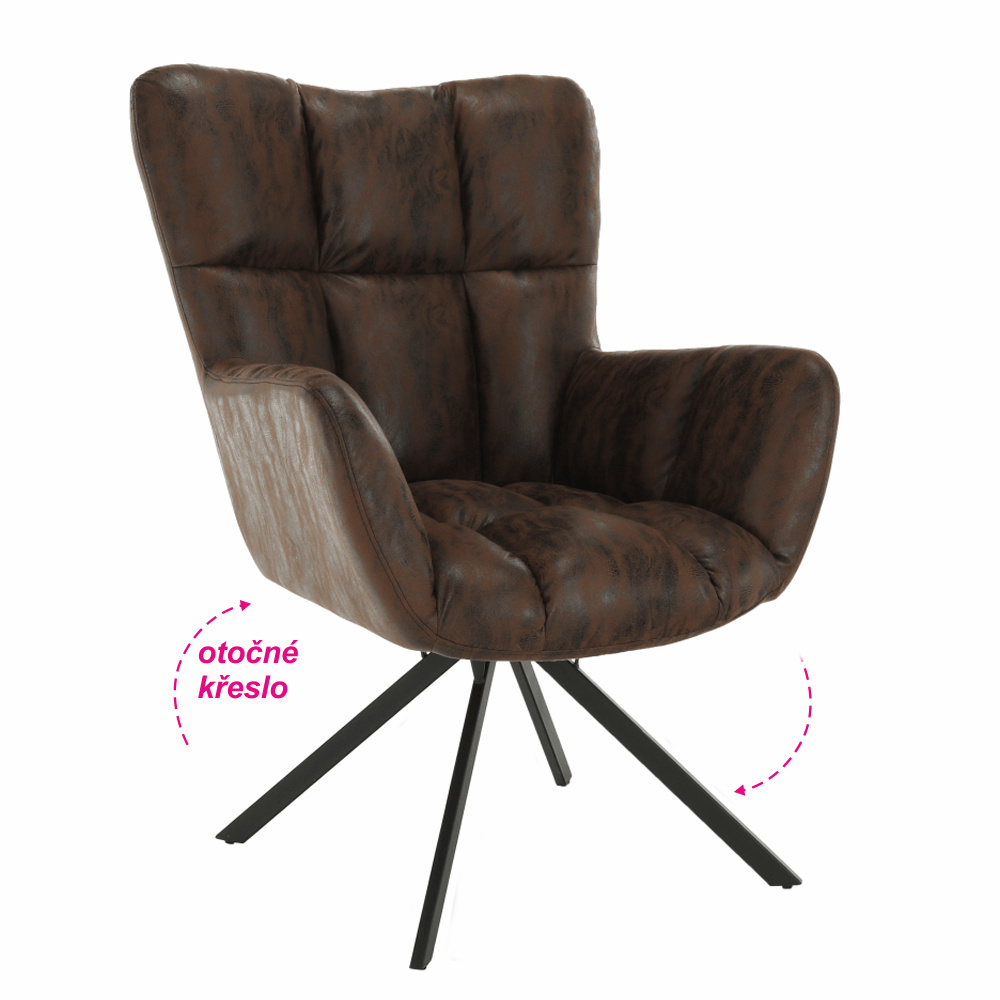 Designové otočné křeslo, látka s efektom brúsenej kože, hnědá/černá, KOMODO