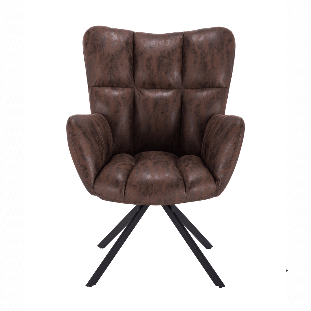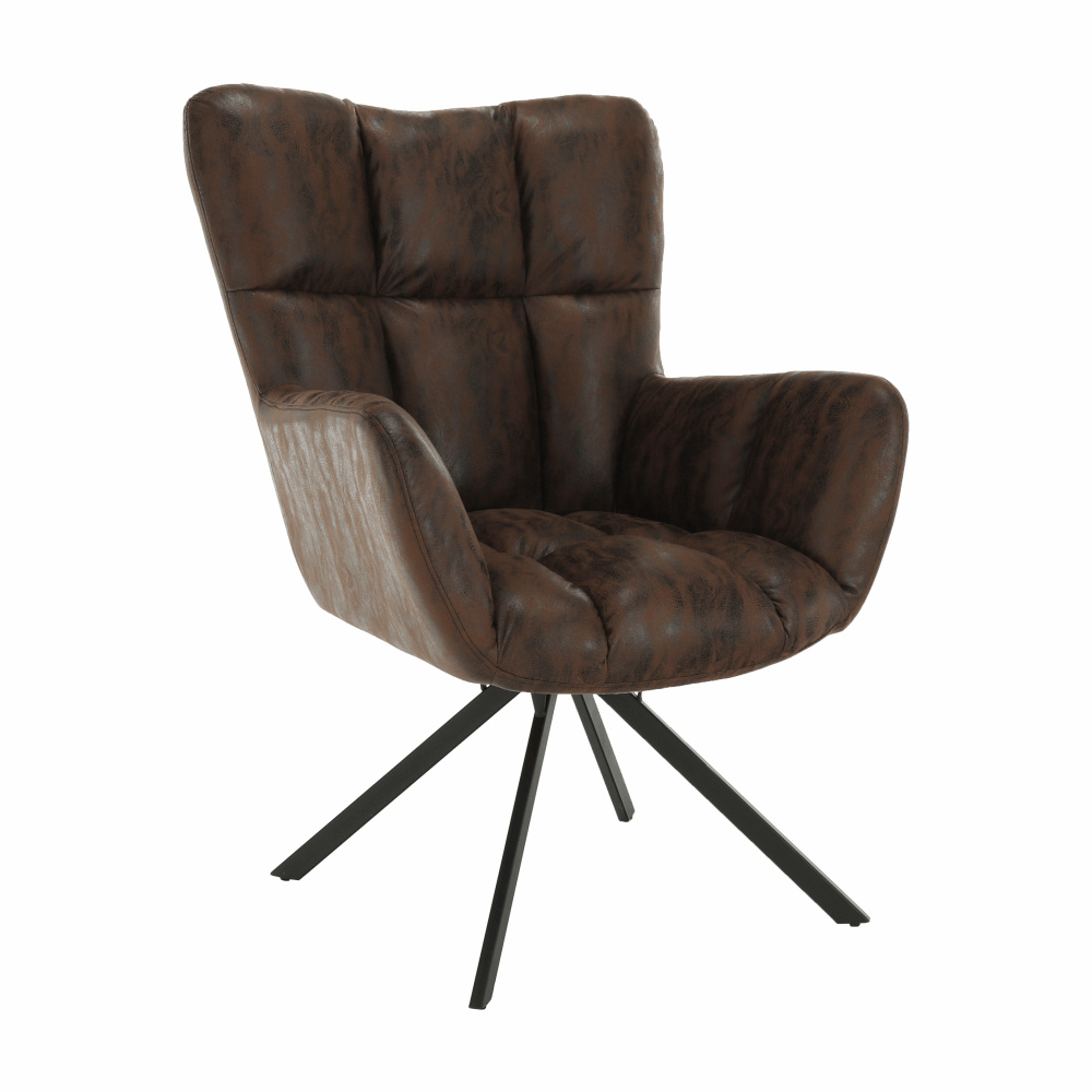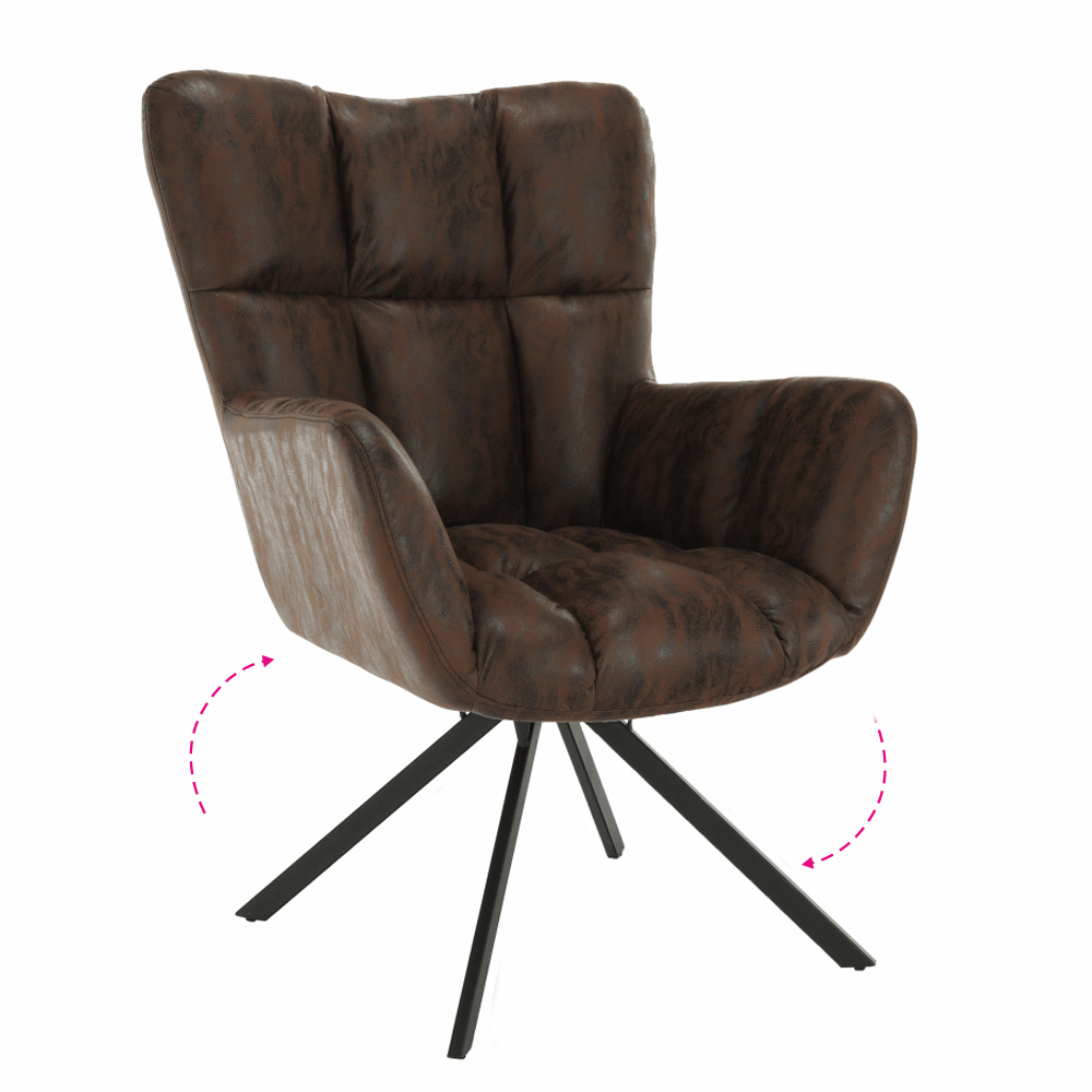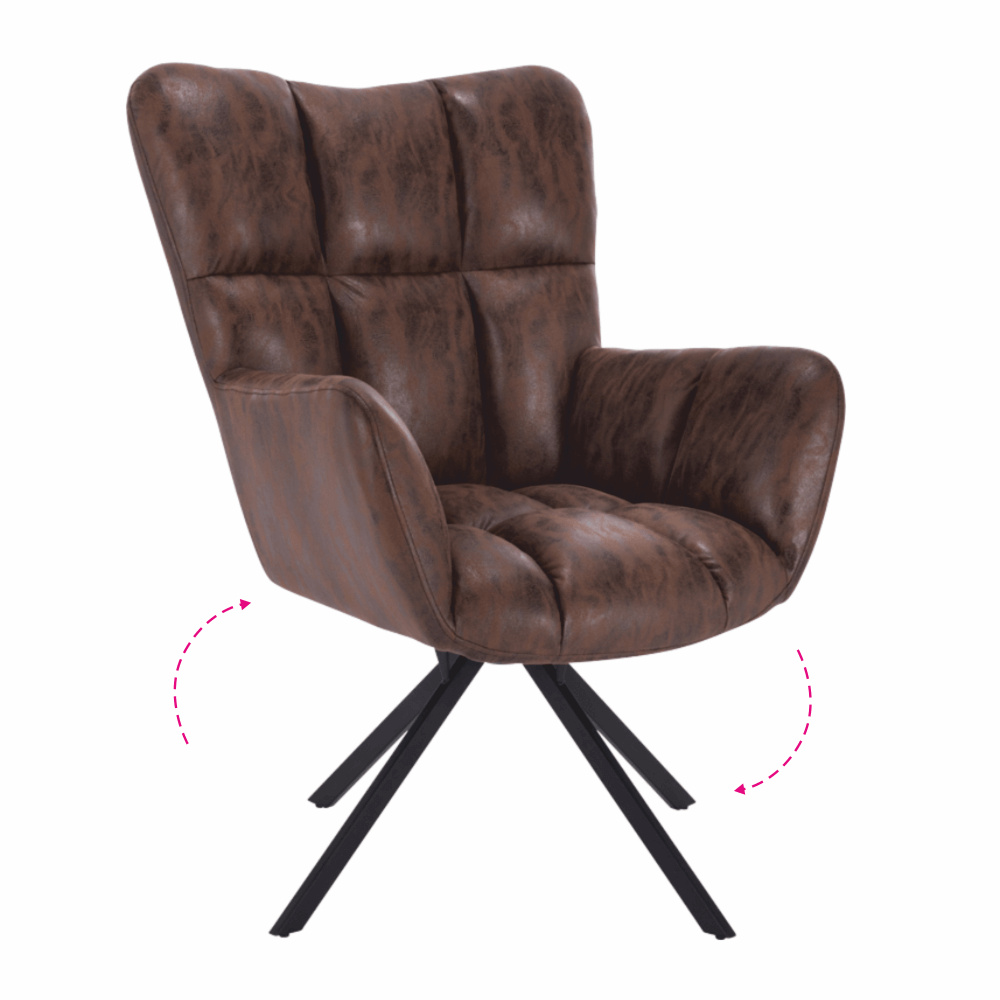 Materiál: látka s efektem broušené kůže / kov Oděruodolnost textilie podle testu Martindale: 68 000 oděrek Barva: hnědá/černá Rozměry (ŠxHxV): 67x72x97 cm Výška sedu: 45 cm Hloubka sedu: 47 cm Šířka sedu: 40 cm Výška zádové opěrky: 52 cm Šířka zádové opěrky: 55 cm Nosnost: 120 kg designové otočné Extra měkké nadýchané čalounění Dodávané v demontu