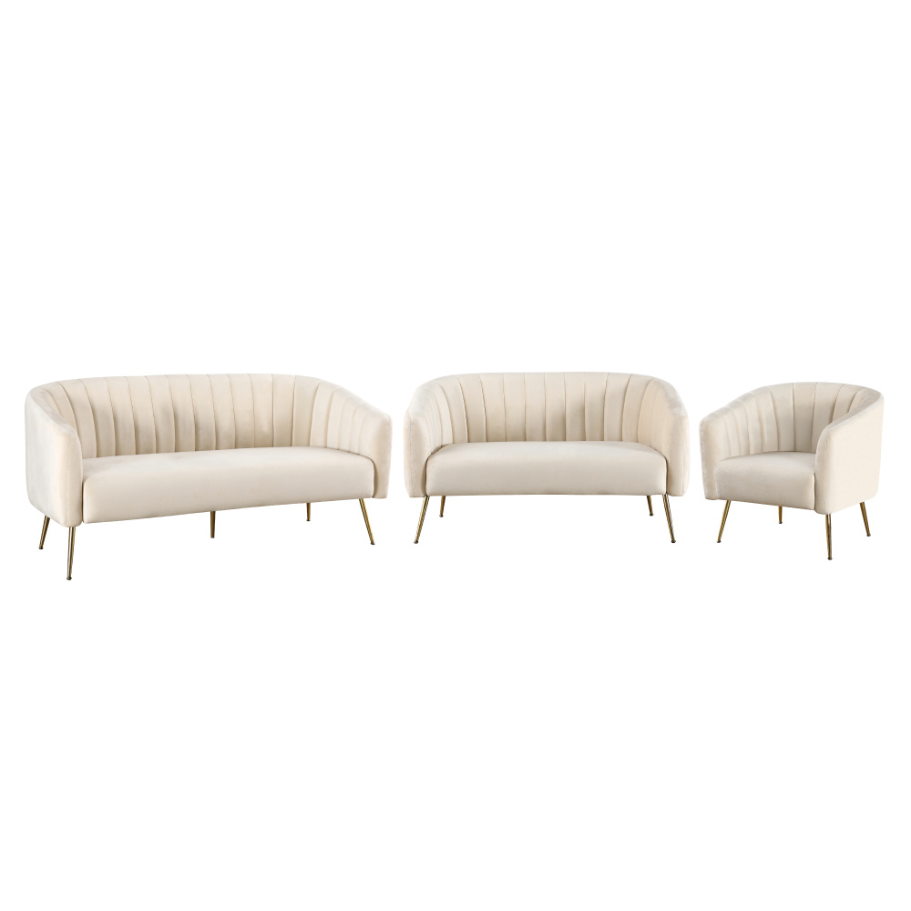 Designový 3-sed, béžová Velvet látka/gold chrom-zlatý, BAGY
