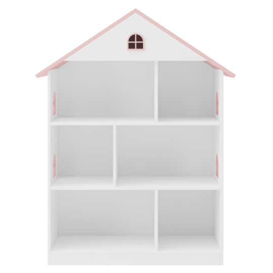 Materiál: MDF Barva: bílá/růžová Rozměry (ŠxHxV): 83x30x106,5 cm Tloušťka materiálu: 1,2 cm Nosnost police: 5 kg Dětská knihovna Regál Ve tvaru domečku Hravý design Podporuje dětskou fantazii Otevřený úložný prostor Police Praktický Vhodný pro uskladnění knih, hraček nebo jiných drobností Vhodné do dětských pokojů Nevhodné pro děti do 3 let Splňuje bezpečnostní normy EN 71 Doporučujeme připevnit ke zdi Dodáváno v demontu