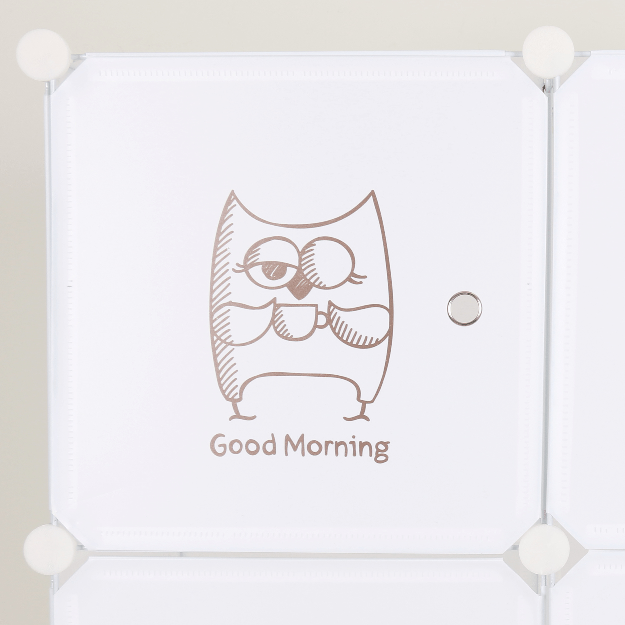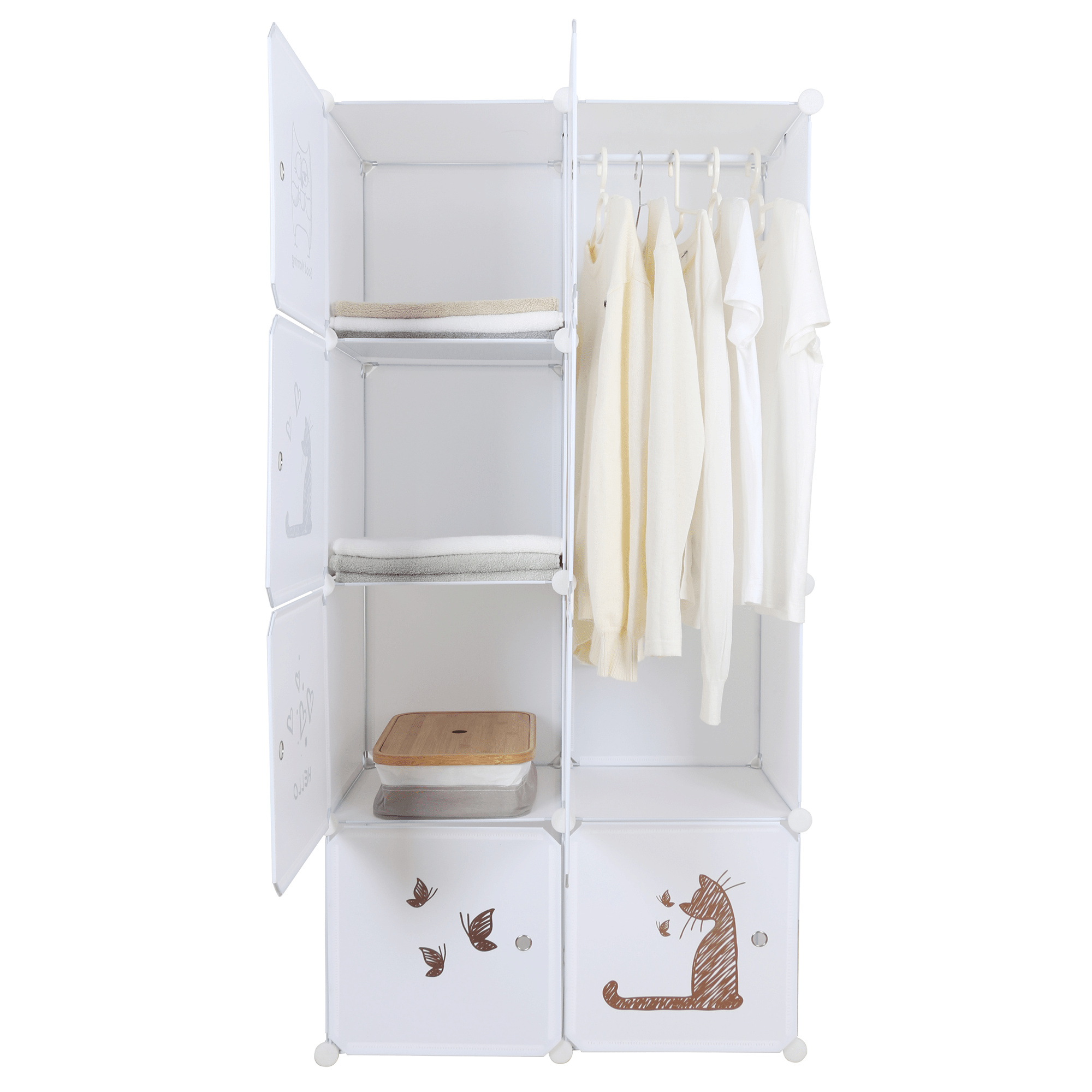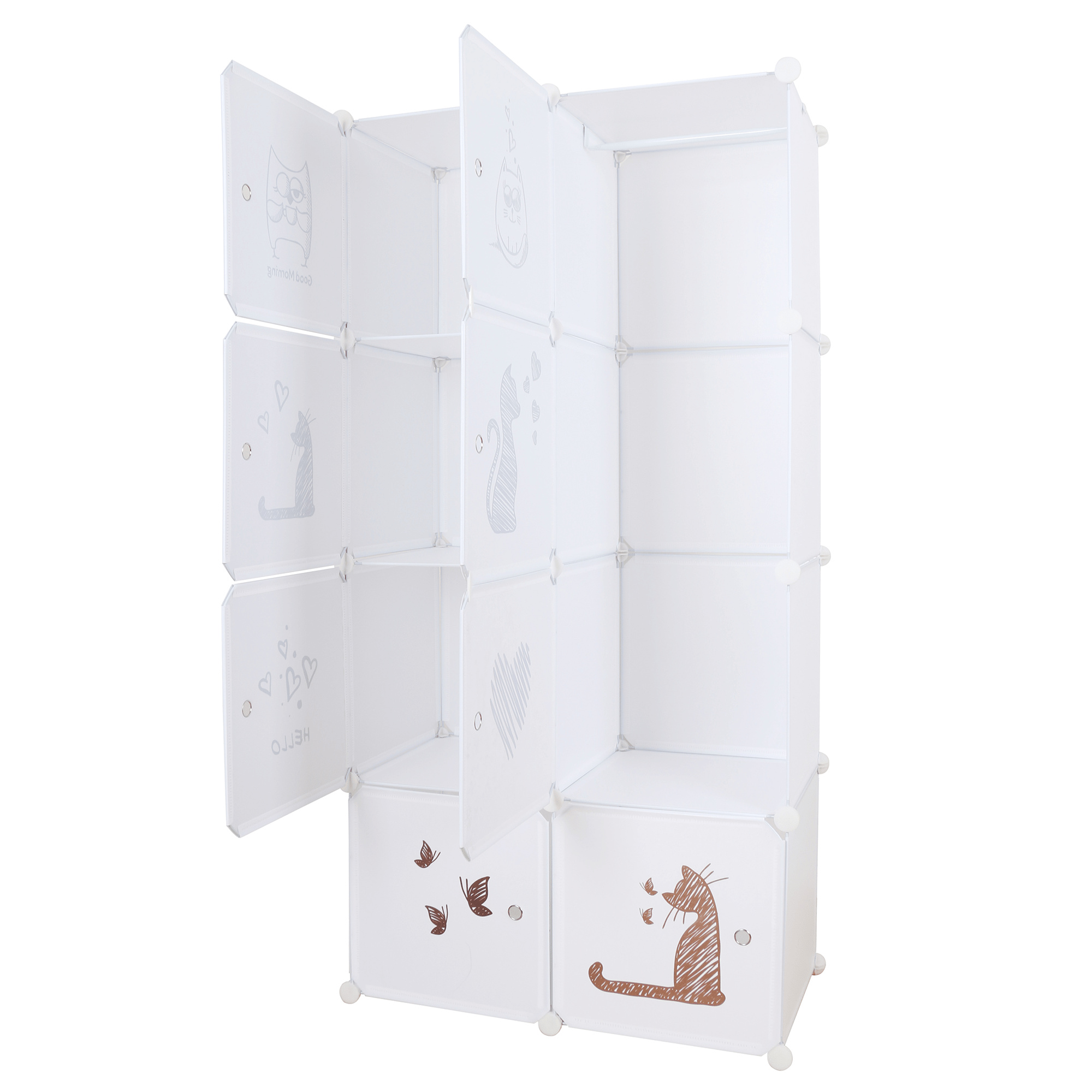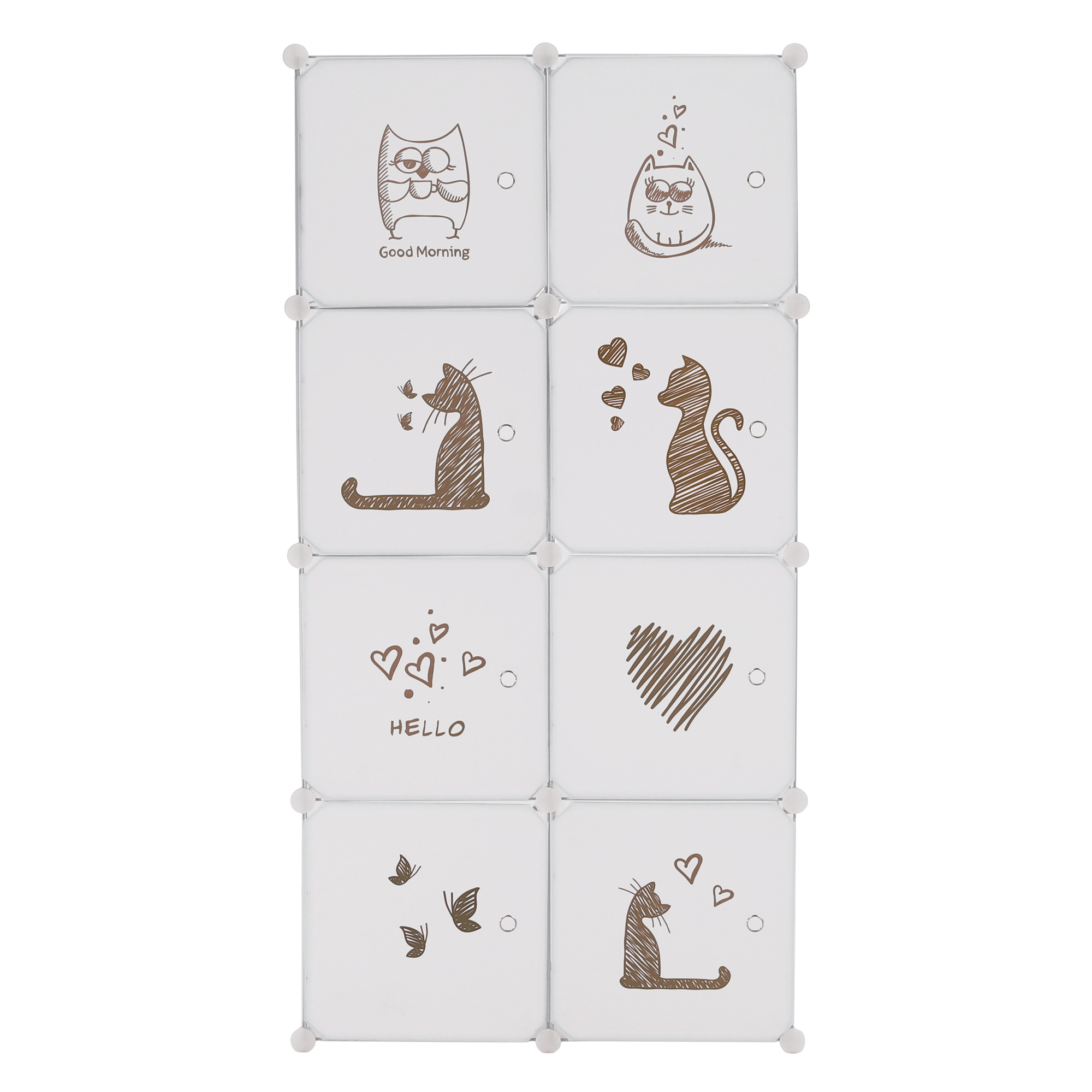 Materiál konstrukce: kov Materiál box: plast Barva: bílá/dětský hnědý vzor Rozměry (ŠxHxV): 75x37x147 cm Spojovací prvky vyrobené z pevného ABS plastu Různé varianty rozmístění polic Nosnost police: 5 kg 8 úložných boxů Součástí balení je závěsná tyč Boxy je třeba rovnoměrně zatěžovat Dětská Se závěsným prostorem kovová konstrukce Snadná údržba Vhodná do dětských pokojů Dodávané v demontu V balení se nachází upevnění ke zdi, které je třeba používat spolu s výrobkem, aby nedošlo k prevráteniu.