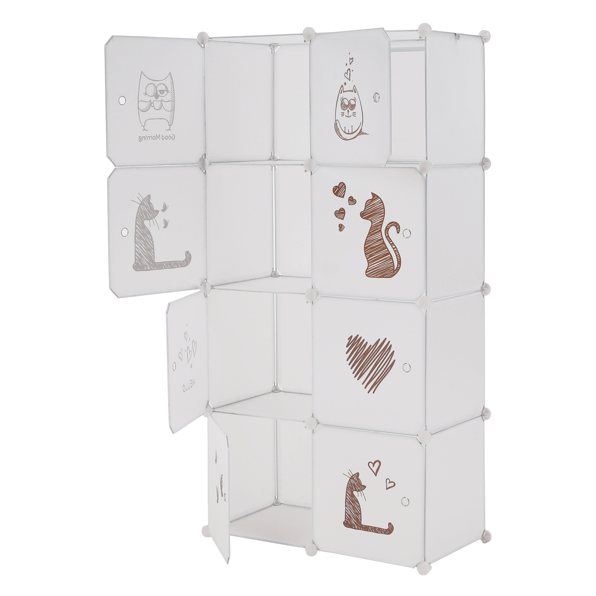 Dětská modulární skříň, bílá/hnědý vzor, KIRBY
