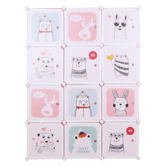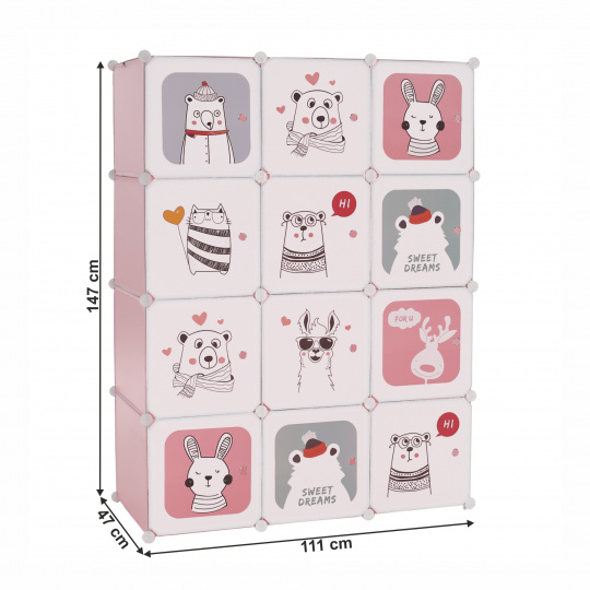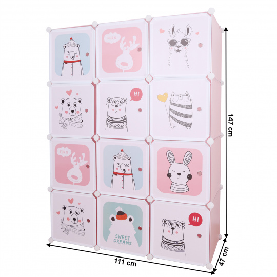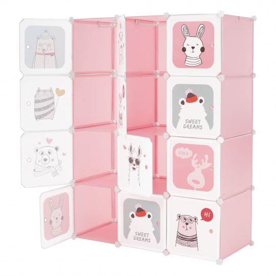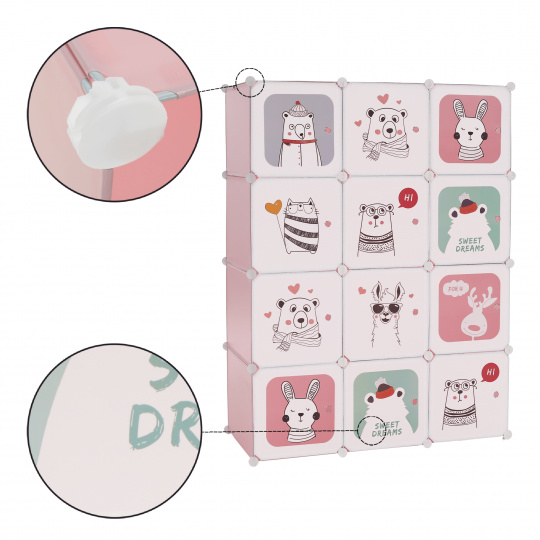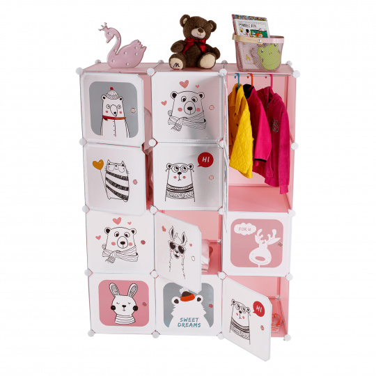 Dětská modulární skříň, růžová / dětský vzor, NURMI