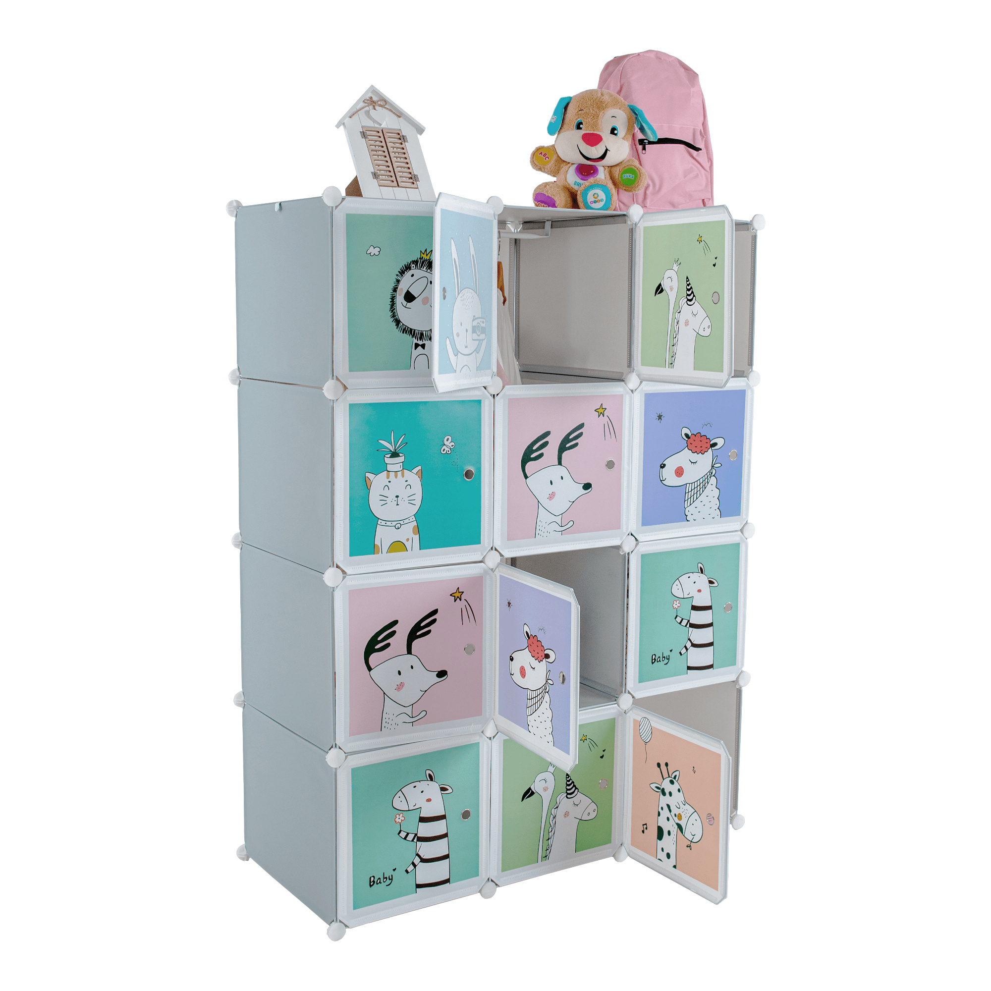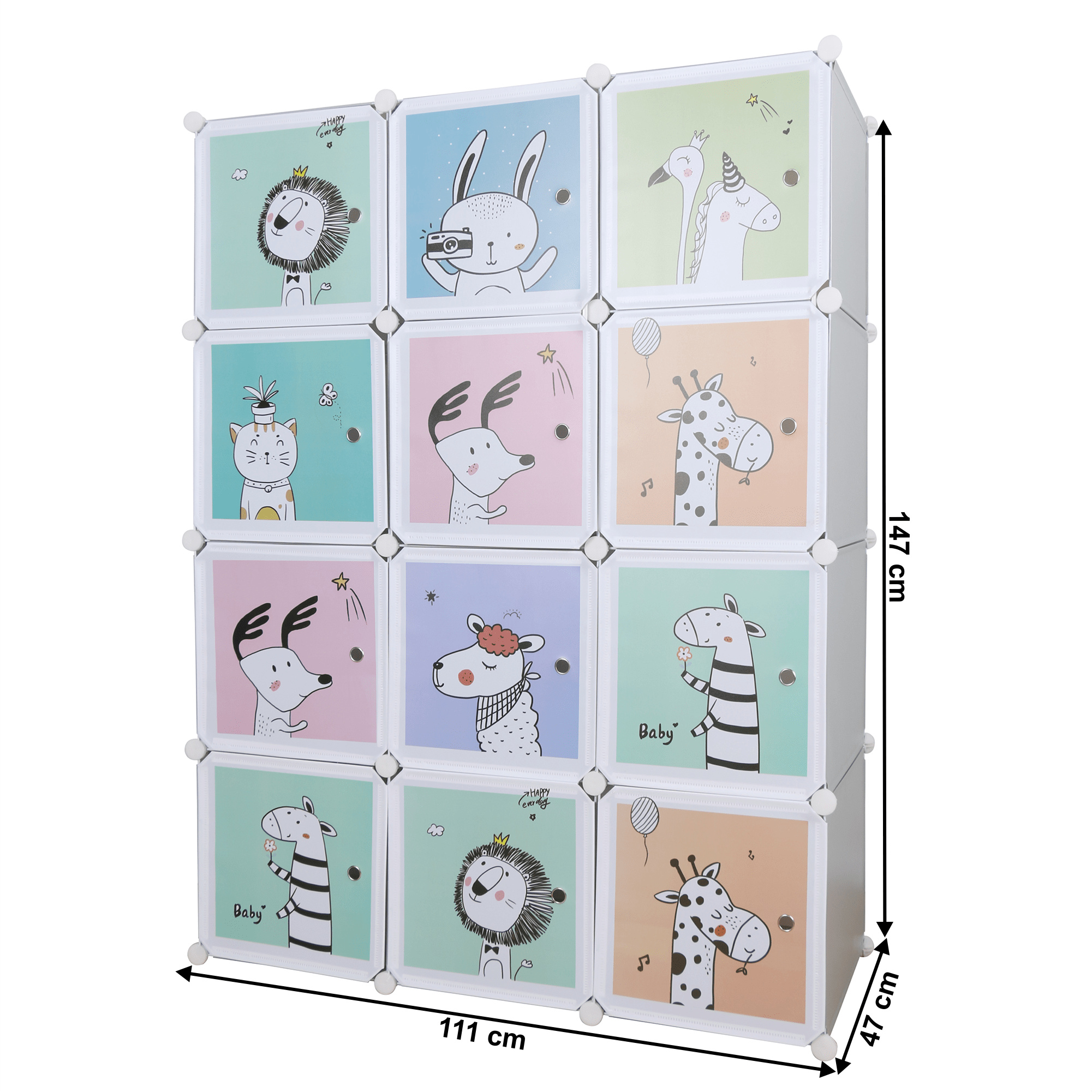 Materiál konstrukce: kov Materiál box: plast Barva: šedá / dětský vzor Rozměry (ŠxHxV): 111x47x147 cm Spojovací prvky vyrobené z pevného ABS plastu Různé varianty rozmístění polic Nosnost boxu: 5 kg Dva boxy s věšákovou tyčí Sedm úložných boxů Boxy je třeba rovnoměrně zatěžovat Vnitřní rozložení skříně si víte přizpůsobit Dětská závěsná kovová konstrukce Vhodná do dětských pokojů Dodávané v demontu V balení se nachází upevnění ke zdi, které je třeba používat spolu s výrobkem, aby nedošlo k převrácení. Výhodou modulárního typu nábytku je to, že si skříň můžete smontovat dle vlastních potřeb. Vnitřní rozložení skříně nemusí být takové jako na obrázku, věšákovou i policovou část si umíte rozvrhnout podle toho, jak právě potřebujete.