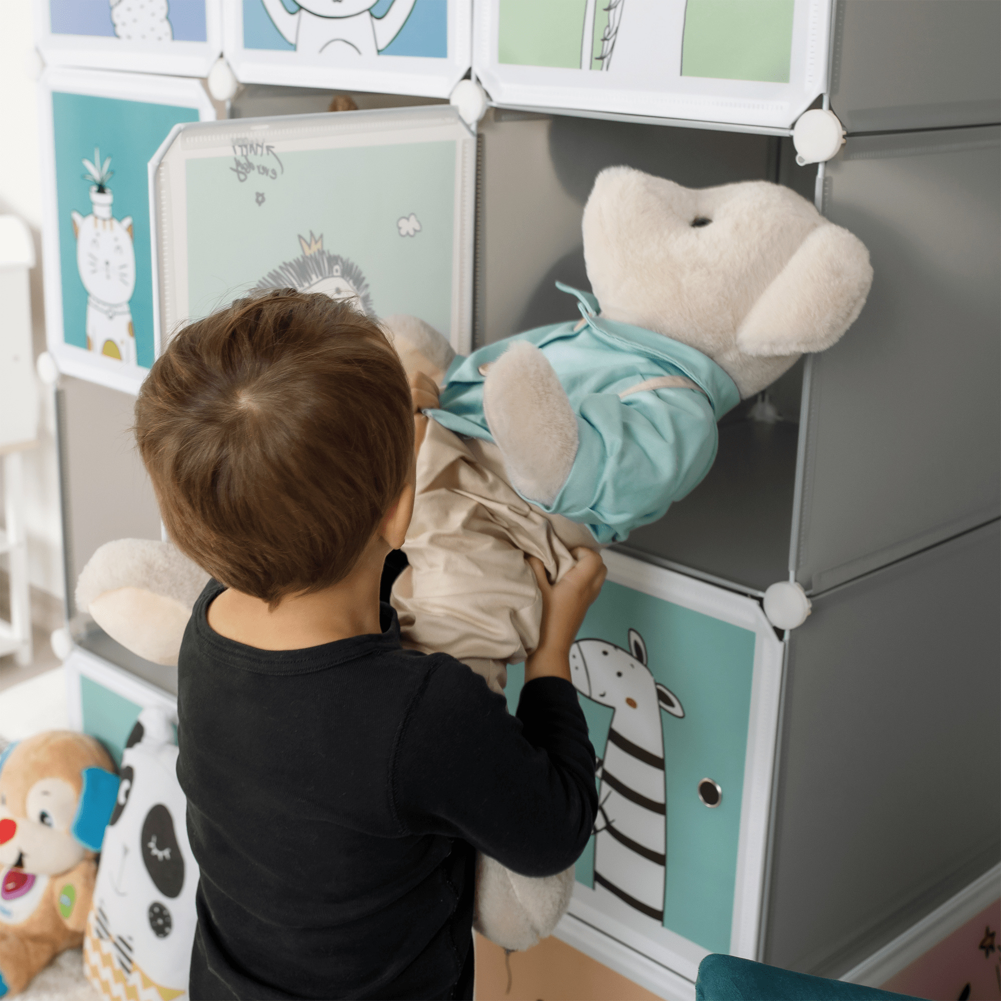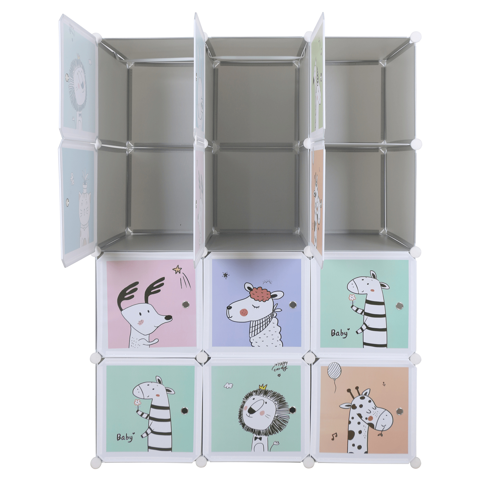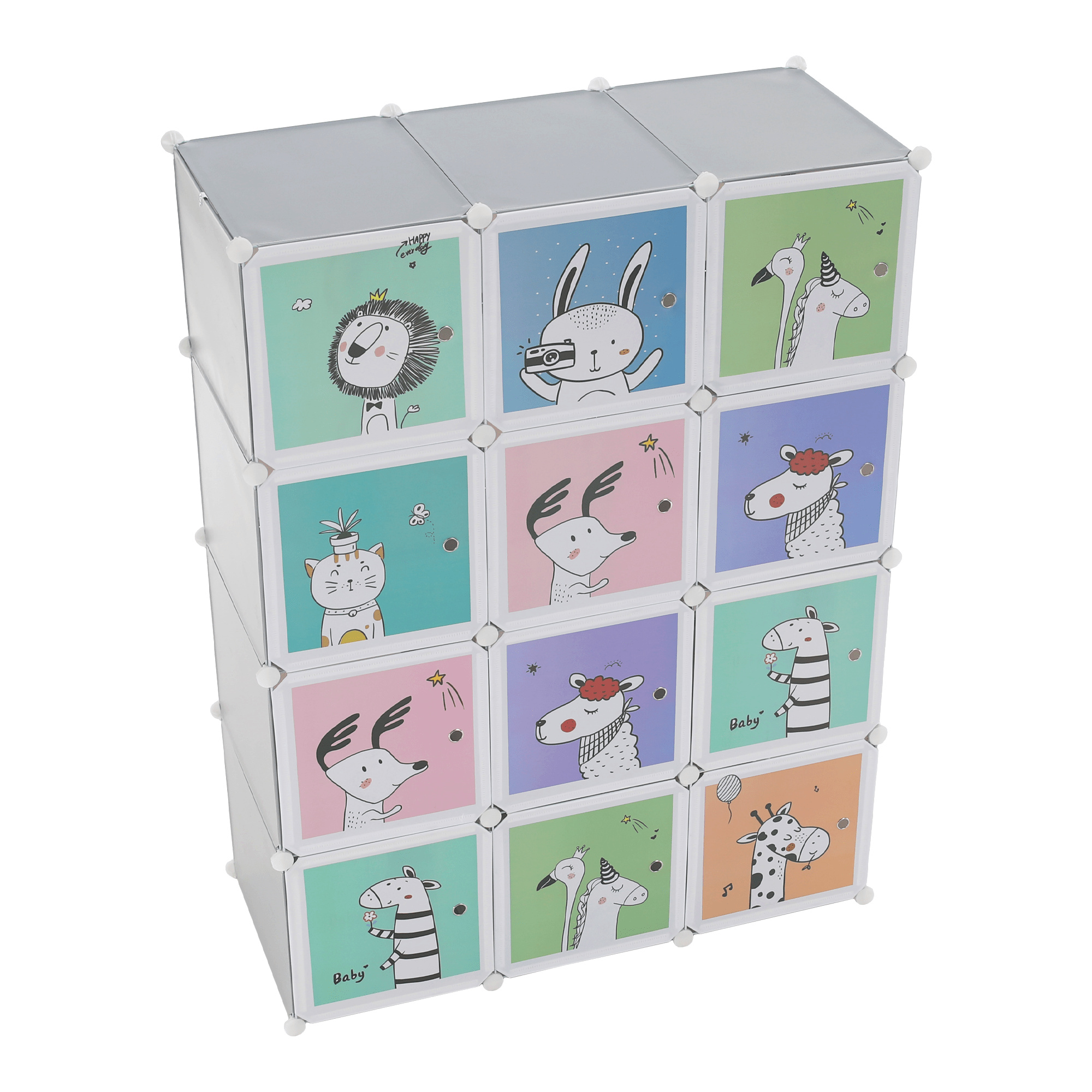 Dětská modulární skříň, šedá / dětský vzor, HAKON