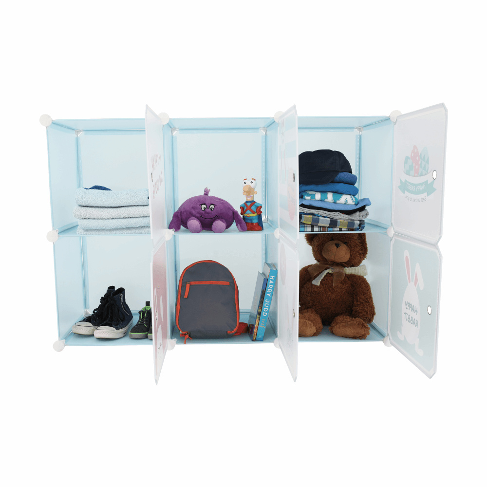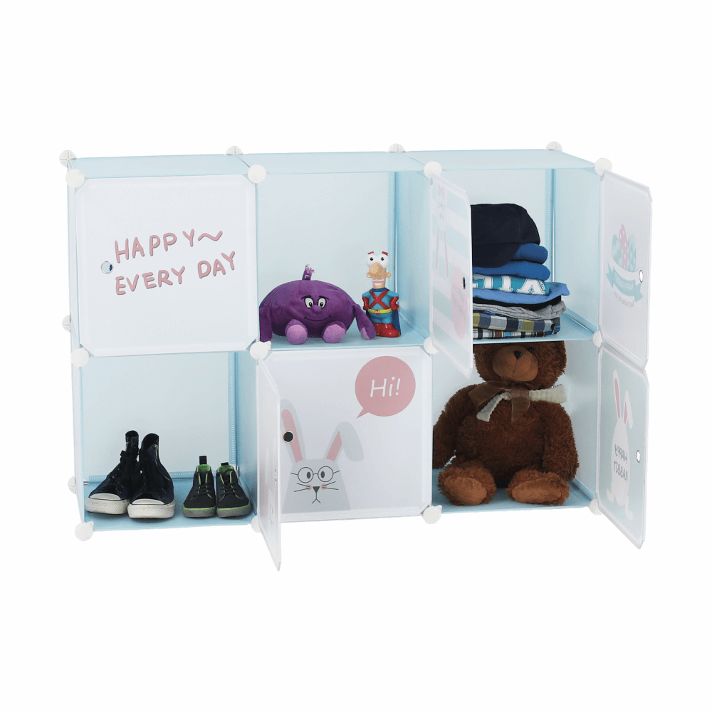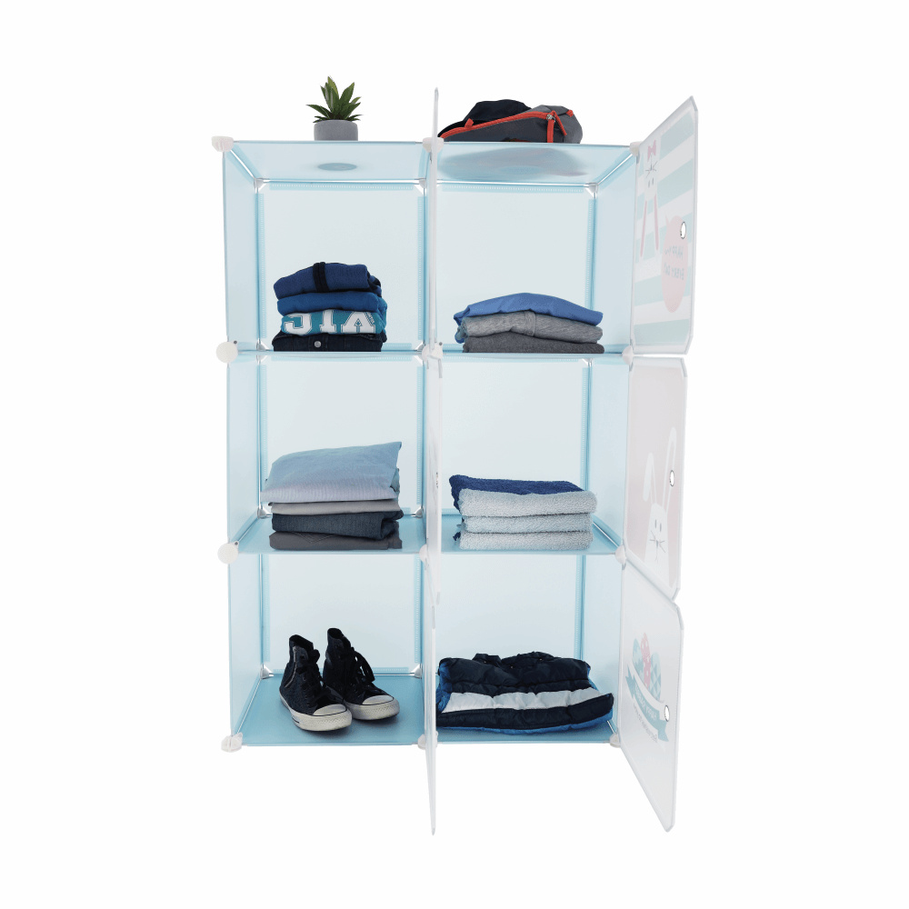 Dětská modulární skříňka, modrá/dětský vzor, EDRIN