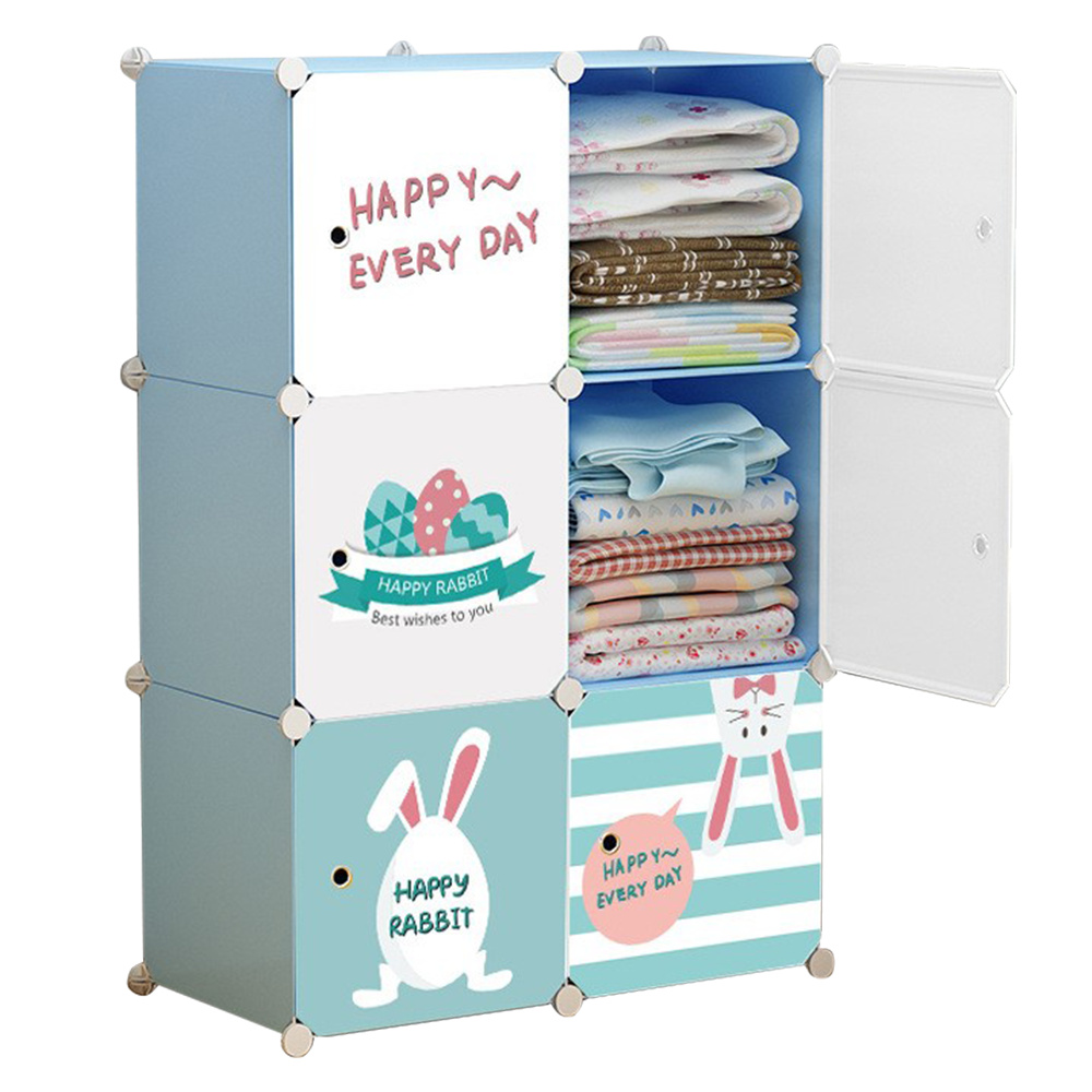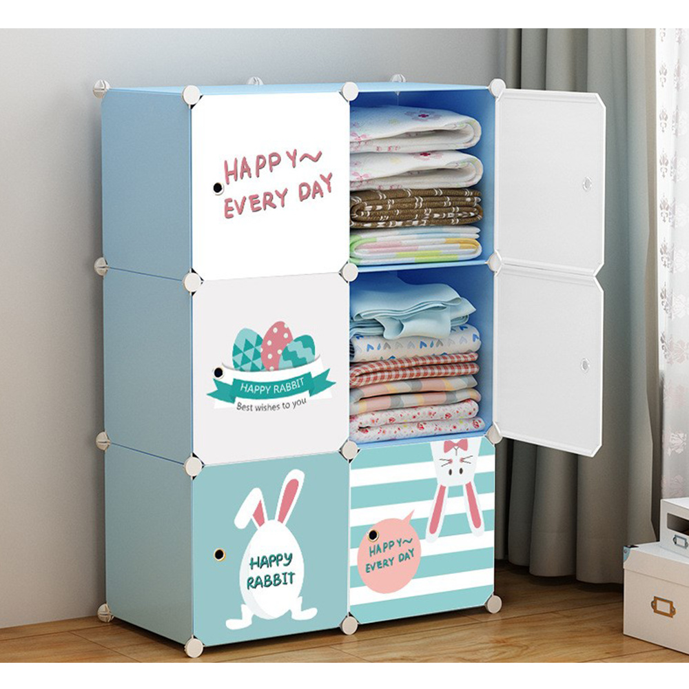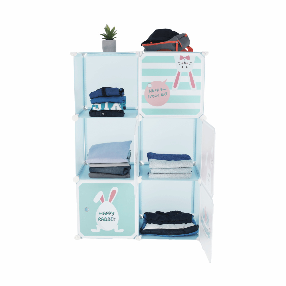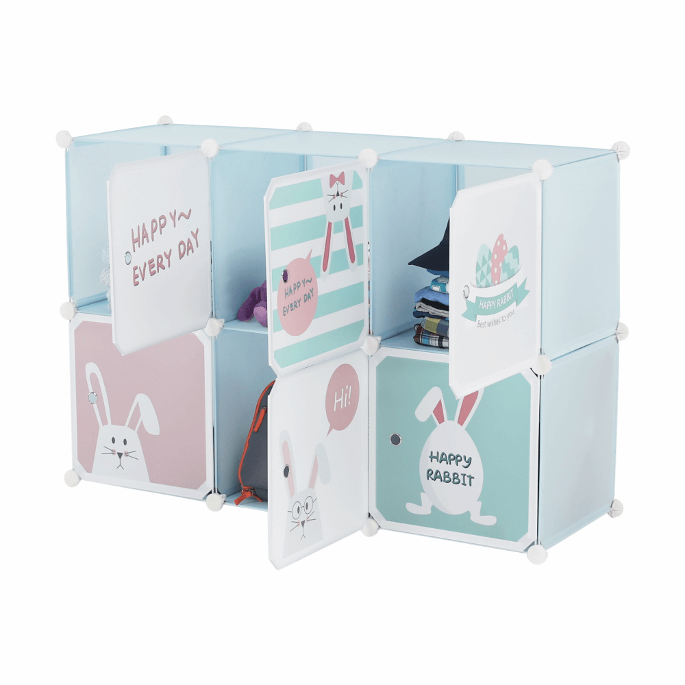 Dětská modulární skříňka, modrá/dětský vzor, EDRIN