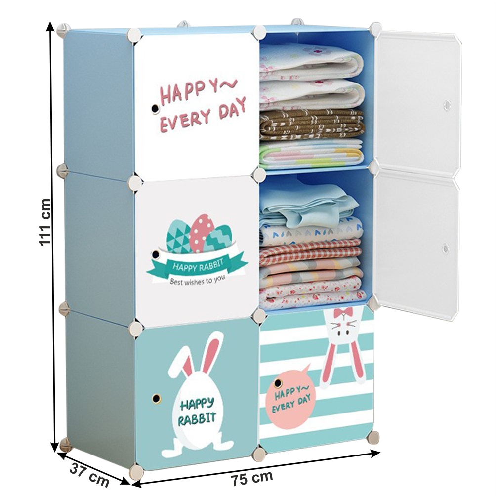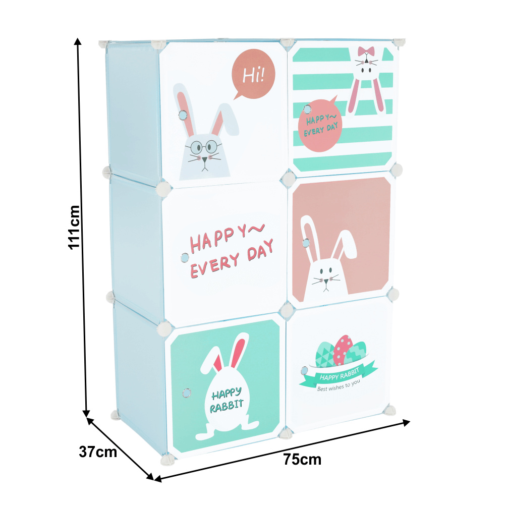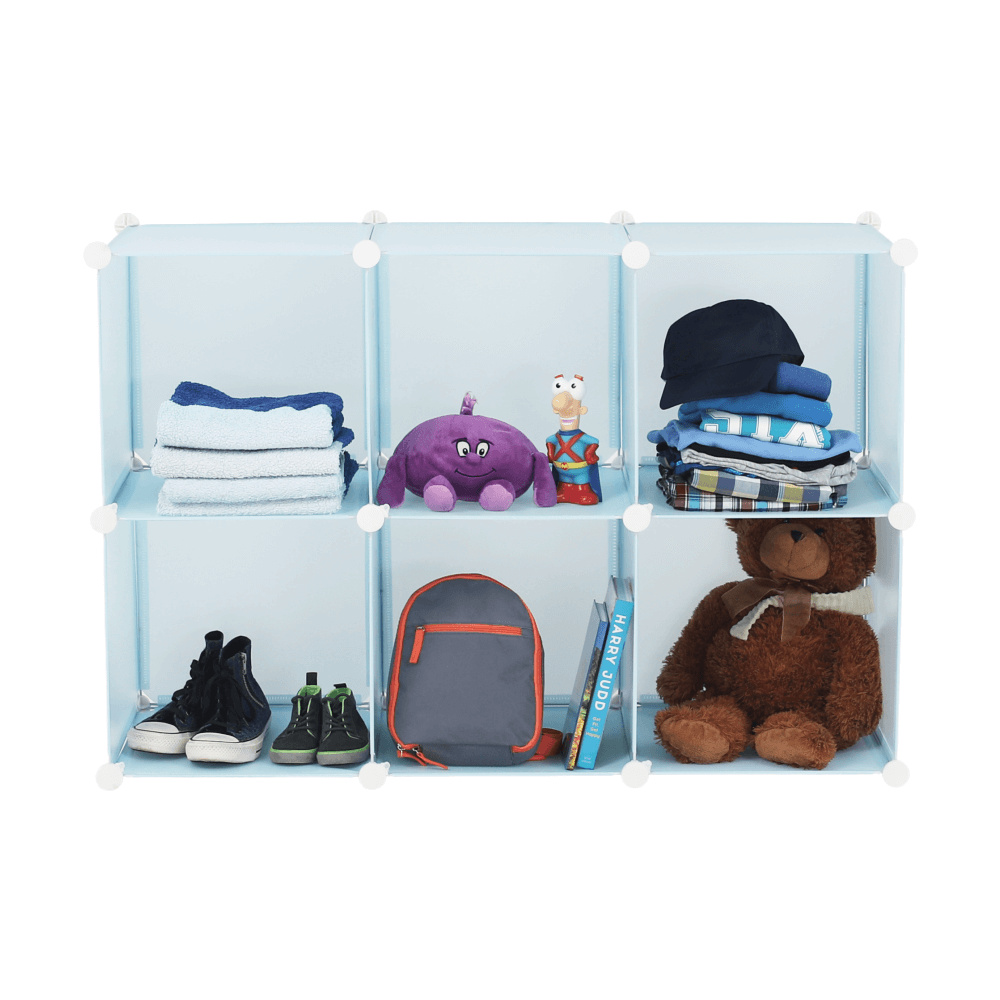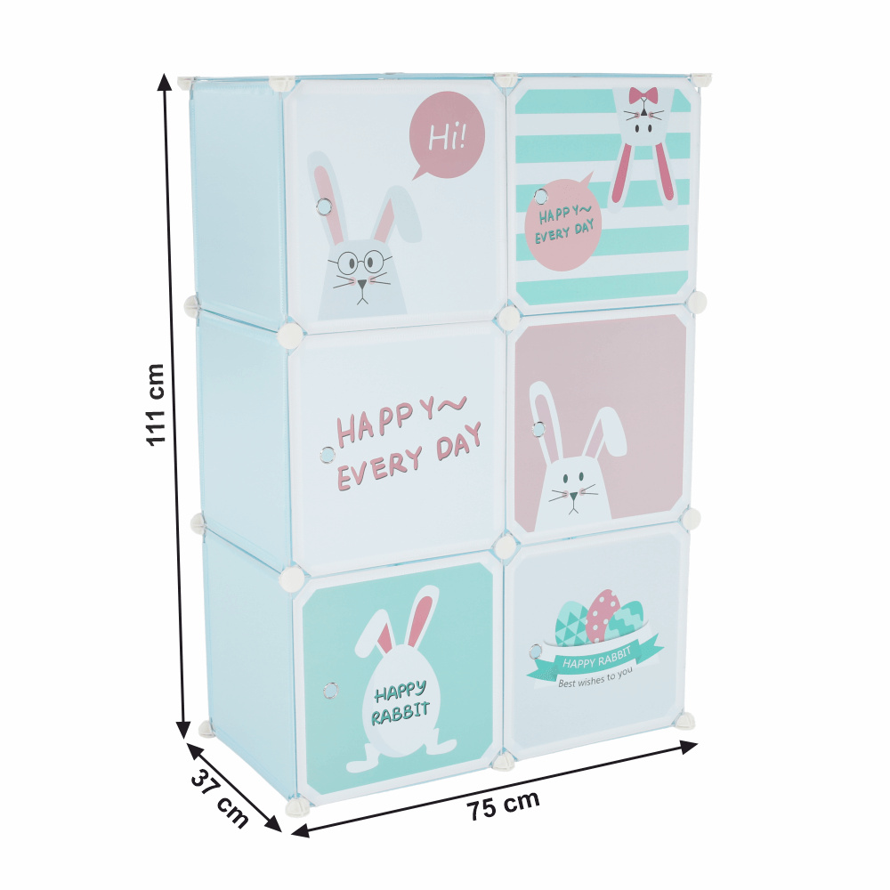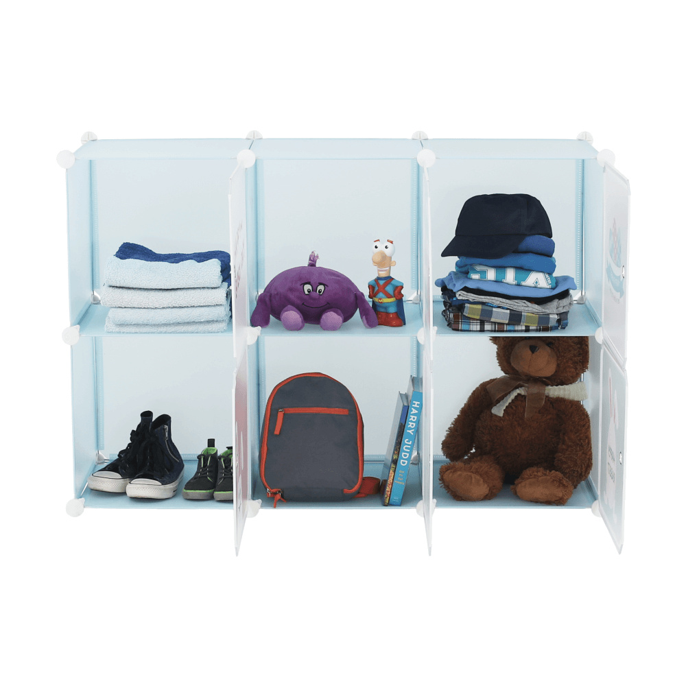 Materiál konstrukce: kov Materiál box: plast Barva: modrá / dětský vzor Rozměry (ŠxHxV): 75x37x111 cm Spojovací prvky vyrobené z pevného ABS plastu Různé varianty rozmístění polic Nosnost boxu: 5 kg 6 úložných boxů Boxy je třeba rovnoměrně zatěžovat Dětská kovová konstrukce Vhodná do dětských pokojů Dodávané v demontu