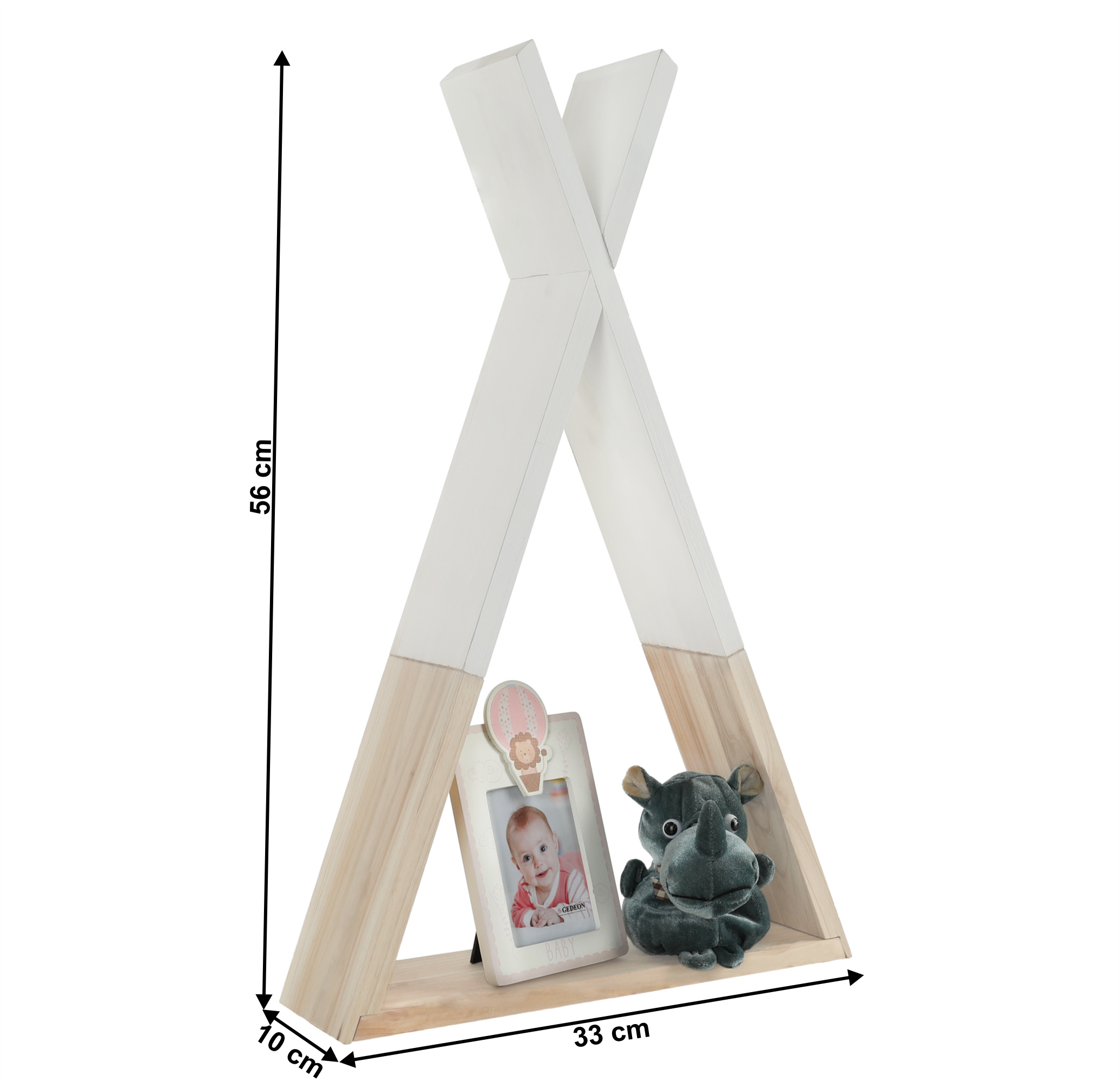 Materiál: masivní dřevo Barva: bílá / přírodní Rozměry (ŠxHxV): 33x10x56 cm Nosnost: 3 kg Dětská Vhodná do dětských pokojů Do školek i kluboven Dodávané v demontu