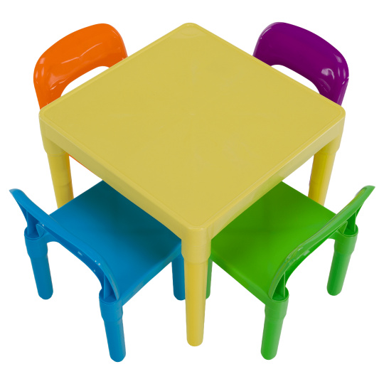 Materiál: plast Barva: vícebarevná Rozměry stolu (ŠxHxV): 51x51x46 cm Rozměry židle (ŠxHxV): 30,5x27x44 cm Výška sedu: 24 cm Hloubka sedu: 27 cm Šířka sedu: 27 cm Výška sedu: 27 cm Opěrka zad (ŠxV): 30,5x17 cm Nosnost: 50 kg Dodávané v demontu