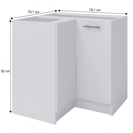 dolní rohová skříňka S - 90N, materiál: DTD laminovaná, barevné provedení: bílá, rozměry ŠxVxH: 79,1x82x79,1 cm. Dodáváno v demontu. Možnost zakoupení pracovní desky Fabiana Metalic brown šedá s tloušťkou 2,8 cm, šířkou 60 cm a cenou za bm 1.390 Kč. Možnost dokoupení univerzálního L / P dřezu LAY ON.