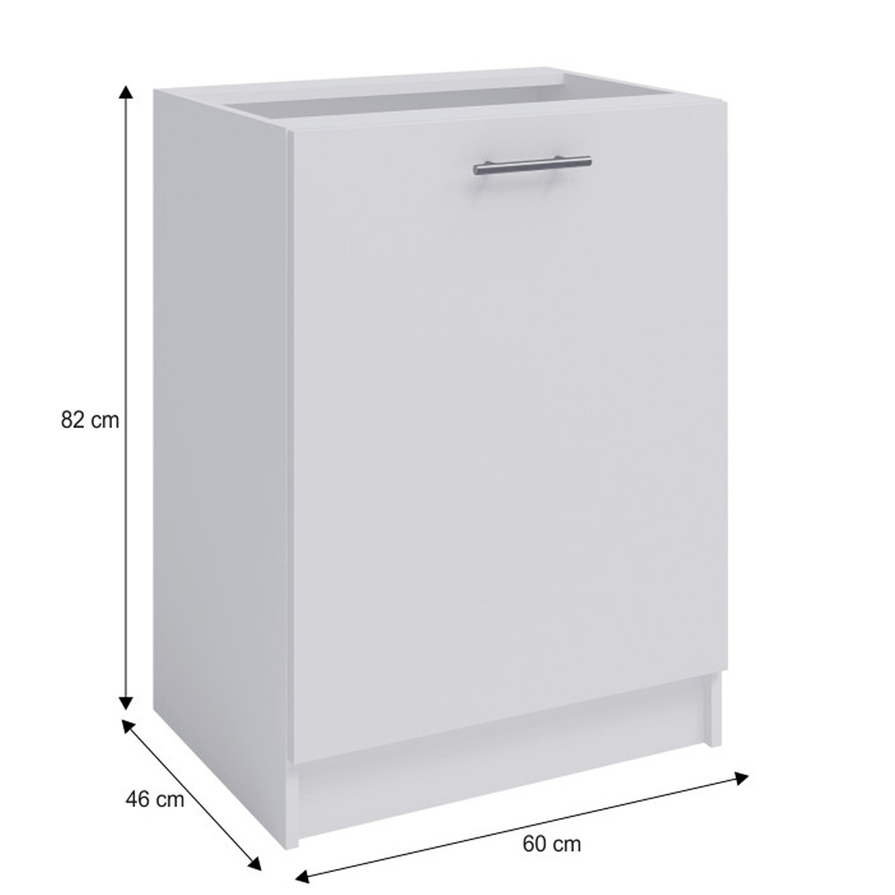 dolní skříňka S - 60, materiál: DTD laminovaná, barevné provedení: bílá, rozměry ŠxVxH: 60x82x46 cm. Tloušťka materiálu: 16 mm Dodáváno v demontu. Možnost zakoupení pracovní desky Fabiana Metalic brown šedá s tloušťkou 2,8 cm, šířkou 60 cm a cenou za bm 1.450 Kč. Možnost dokoupení univerzálního L / P dřezu LAY ON.