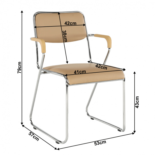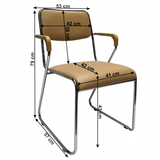 Barva: hnědá / chrom Materiál: ekokůže / plast / kov Oděruodolnost textilie podle testu Martindale: 100 000 oděrek Rozměry (ŠxHxV): 53x57x79 cm Výška sedu: 43 cm Hloubka sedu: 42 cm Šířka sedu: 41 cm Šířka zádové opěrky: 41 cm Výška zádové opěrky: 38 cm Nosnost: 110 kg stohovatelná Dodávané v monte.