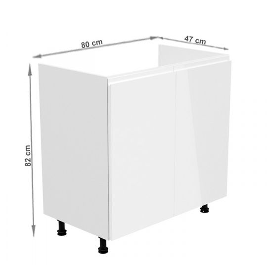 Dřezová skříňka, Aurora D80Z Provedení: DTD laminové / MDF Barva: bílá / bílá extra vysoký lesk Rozměry (ŠxHxV): 80x47x82 cm Tloušťka materiálu: 15 mm Systém tichého zavírání dvířek Pracovní deska není součástí skříněk. Je možné si doobjednat pracovní desku v provedení dub artisan o tloušťce 38 mm za 1.690 Kč/bm. Možnost dokoupit dřez, dřezovou baterii a příslušenství. Ke spodním skříňkám máte možnost dokoupit spodní lištu/sokl v bílé barvě o rozměru 1 bm za 210 Kč nebo 2 bm za 420 Kč a ukončení na sokl o hloubce 47 cm nebo 58 cm za 140 Kč. Ke každé dolní skříňce, kromě D25PZ, je třeba doobjednat 2 ks úchytek na sokl - cena 30 Kč/2ks.