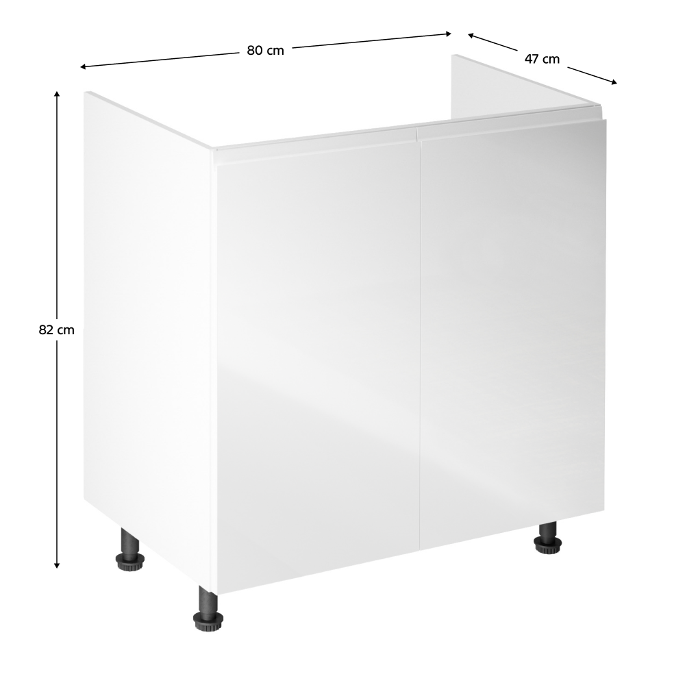 Dřezová skříňka, Aurora D80Z Provedení: DTD laminové / MDF Barva: bílá / bílá extra vysoký lesk Rozměry (ŠxHxV): 80x47x82 cm Tloušťka materiálu: 15 mm Systém tichého zavírání dvířek Pracovní deska není součástí skříněk. Je možné si doobjednat pracovní desku v provedení dub artisan o tloušťce 38 mm za 1.690 Kč/bm. Možnost dokoupit dřez, dřezovou baterii a příslušenství. Ke spodním skříňkám máte možnost dokoupit spodní lištu/sokl v bílé barvě o rozměru 1 bm za 210 Kč nebo 2 bm za 420 Kč a ukončení na sokl o hloubce 47 cm nebo 58 cm za 140 Kč. Ke každé dolní skříňce, kromě D25PZ, je třeba doobjednat 2 ks úchytek na sokl - cena 30 Kč/2ks.