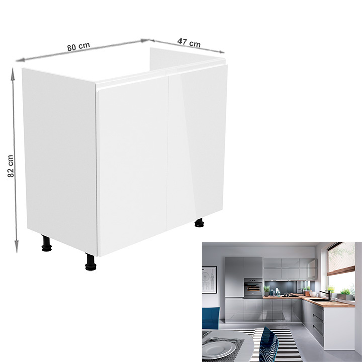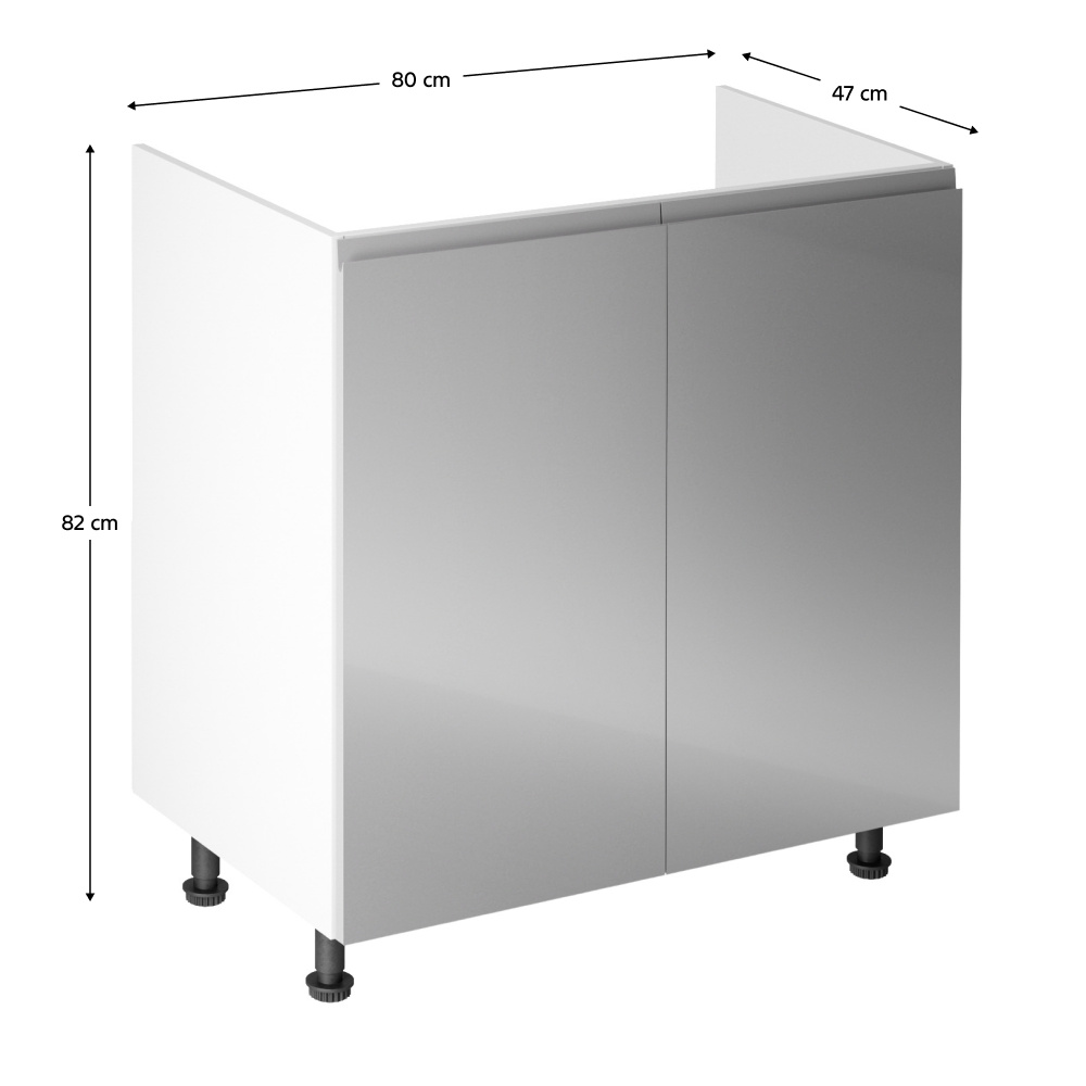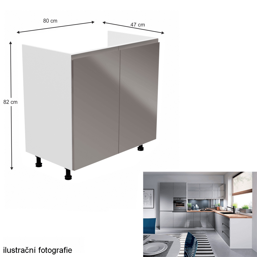 Dřezová skříňka, Aurora D80Z Provedení: DTD laminové / MDF Barva: bílá / šedá extra vysoký lesk Rozměry (ŠxHxV): 80x47x82 cm Tloušťka materiálu: 15 mm Systém tichého zavírání dvířek Je nutné objednat potřebný počet ukončení spodní lišty Pracovní deska není součástí skříněk. Je možné si doobjednat pracovní desku v provedení dub artisan o tloušťce 38 mm za 1.690 Kč/bm. Možnost dokoupit dřez, dřezovou baterii a příslušenství. Ke spodním skříňkám máte možnost dokoupit spodní lištu/sokl v bílé barvě o rozměru 1 bm za 280 Kč nebo 2 bm za 560 Kč a ukončení na sokl o hloubce 47 cm nebo 58 cm za 210 Kč. Ke každé dolní skříňce, kromě D25PZ, je třeba doobjednat 2 ks úchytek na sokl - cena 40 Kč/2ks.