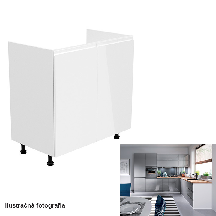 Dřezová skříňka, bílá / bílá extra vysoký lesk, AURORA D80Z