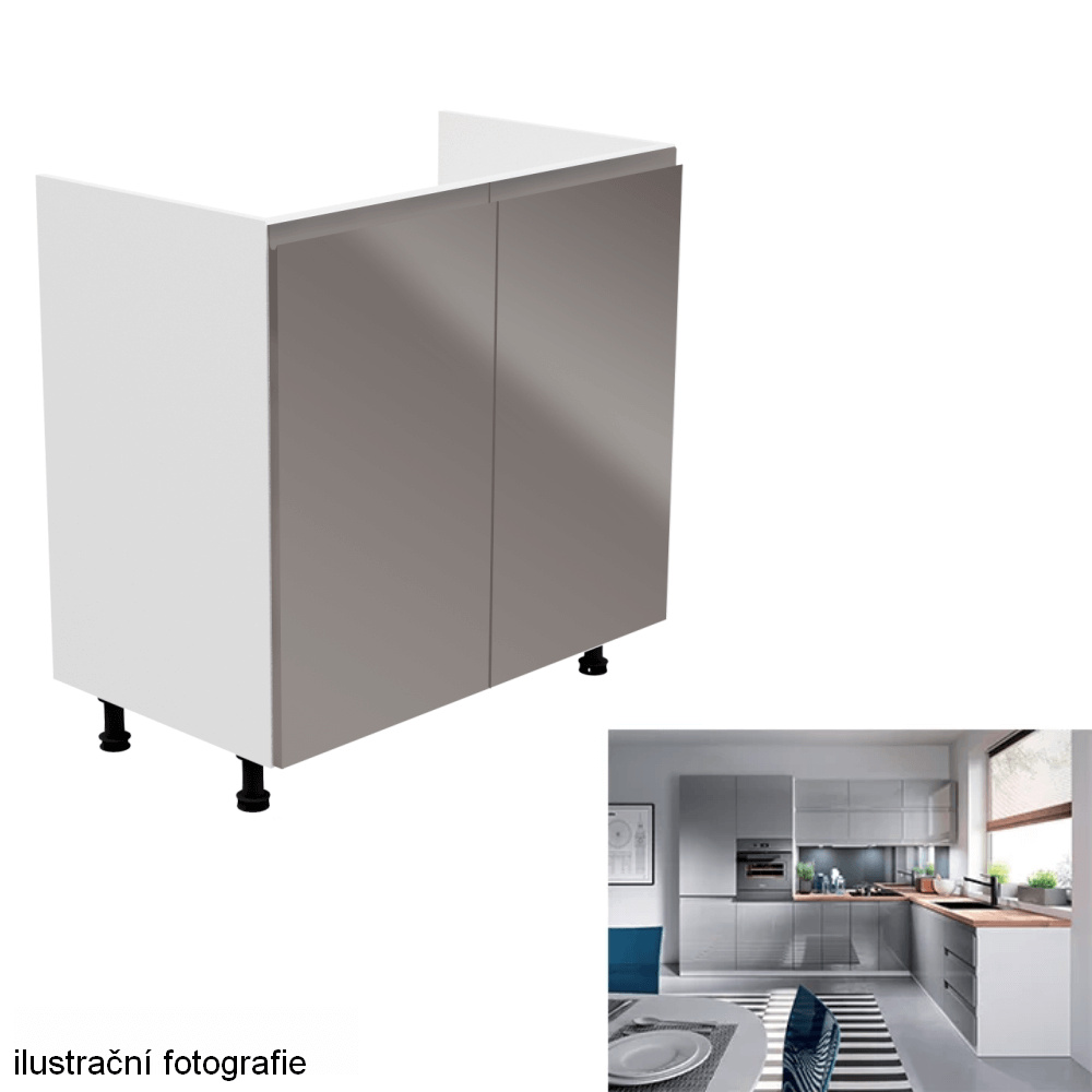Dřezová skříňka, bílá / šedá extra vysoký lesk, AURORA D80Z