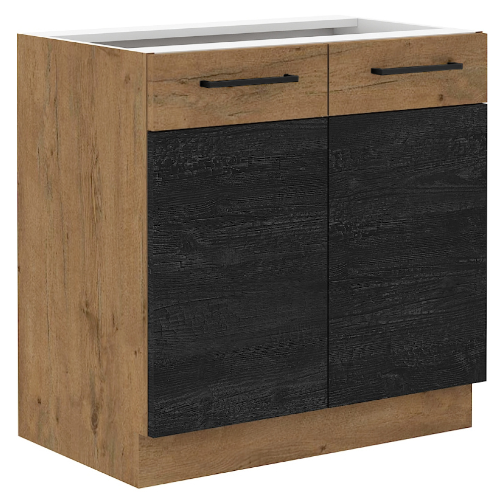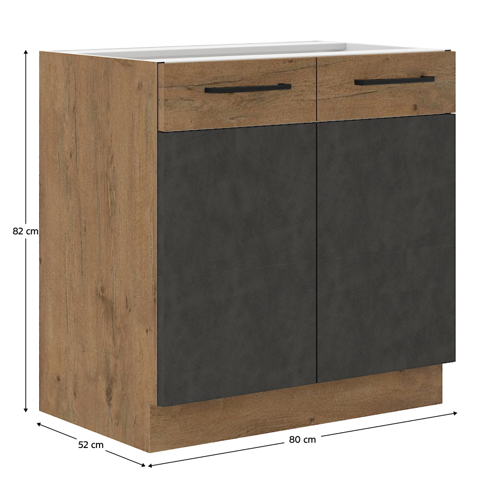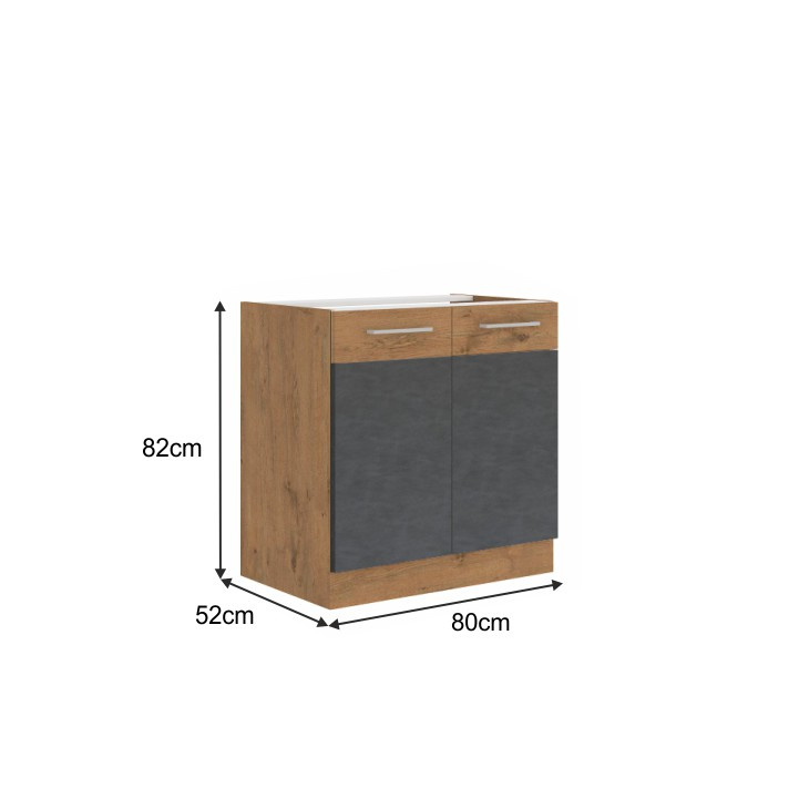 Dřezová skříňka VEGA 80 ZL 2F BB Materiál: DTD laminovaná Barva: šedá matná / dub lancelot Rozměry (ŠxHxV): 80x52x82 cm Dřezová skříňka bez pracovní desky Systém tichého zavírání dvířek Dodávané bez dřezu Včetně spodní lišty Dodávané v demontu Spodní skříňky jsou dodávány včetně dolní lišty, bez pracovní desky. Možnost dokoupit pracovní desku dub lancelot v ceně: 1590 Kč/bm. Možnost dokoupit univerzální L / P dřez LAY ON.