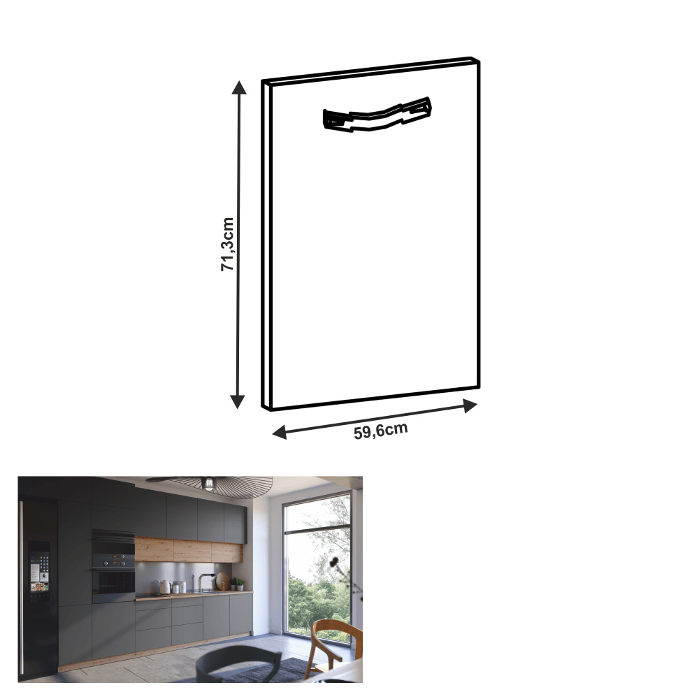 Dvířka na myčku, šedý mat, 59,6x71,3, LANGEN