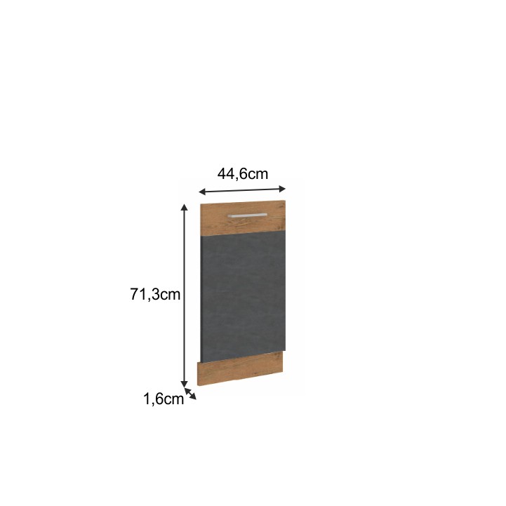 Dvířka na vestavnou myčku VEGA ZM 713x446 Materiál: DTD laminovaná Barva: šedá matná/dub lancelot Rozměry (ŠxHxV): 44,6x1,6x71,3 cm Dodávané v demontu Spodní skříňky jsou dodávány včetně dolní lišty, bez pracovní desky. Možnost dokoupit pracovní desku dub lancelot v ceně: 1590 Kč/bm. Možnost dokoupit univerzální L / P dřez LAY ON.