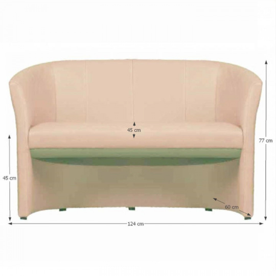 Materiál: ekokůže Oděruodolnost textilie podle testu Martindale: 100 000 oděrek Barva: béžová Výplň: purpena Rozměry (ŠxHxV): 124x60x77 cm Výška sedu: 45 cm Hloubka sedu: 42 cm Výška opěrky na záda: 69 cm Dodávané v monte Možnost objednat dvojkřeslo CUBA i v ekokůži nebo v látce Lava v ceně 5.090 Kč cena v látce Savana nebo v látce Soro, Kronos 4.850 Kč, v látce mikrofáze za cenu 4.490 Kč. Při individuální objednávce je třeba zaplatit 20% zálohu z dané částky. Po uhrazení zálohy bude Vaša objednávka zadána do výroby. Doba dodání 6-8 týdnů.